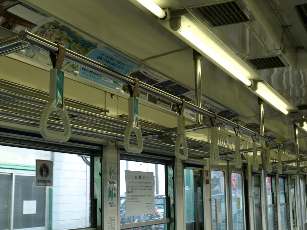・6000系 ドア開閉(youtube) 元都営三田線の6000系。基本的に三田線時代の印象のまま活躍を続けています。青ガエルに乗った後の乗車だったため、もはや古くもなんとも感じ無かったのが、なんというか…。 三田線時代にも何度か乗ったことがあるので、なんだか懐かしかったです。特に後付けのドアチャイムはありません。 |