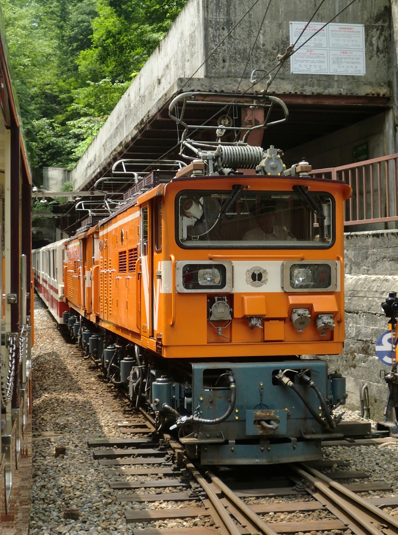 EDV形 関西電力名義で2011年に登場した機関車で、現在はトロッコ列車の牽引にも用いられています。私鉄で且つナローゲージで初となるVVVFインバータ制御の機関車で、既に駅売店ではグッズがいくつか販売されていたりします。出逢えるかは運次第ですが基本的には他の機関車と共通運用です。 左写真は鐘釣にて。 |