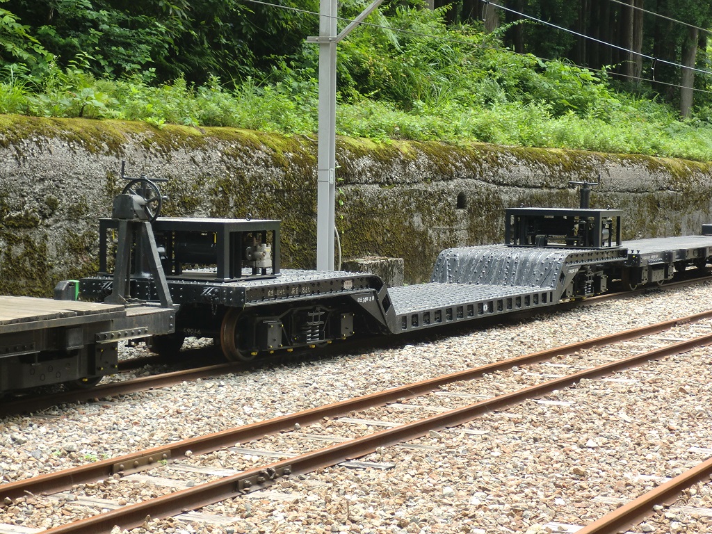 オシ2とオシ3の2両が在籍。本格的な大物車で、見た目は2両ともほとんど変わりません。オシ2の方がより多くのものが積めるようで、オシ3の倍近くの積載量(18.6t)となっています。