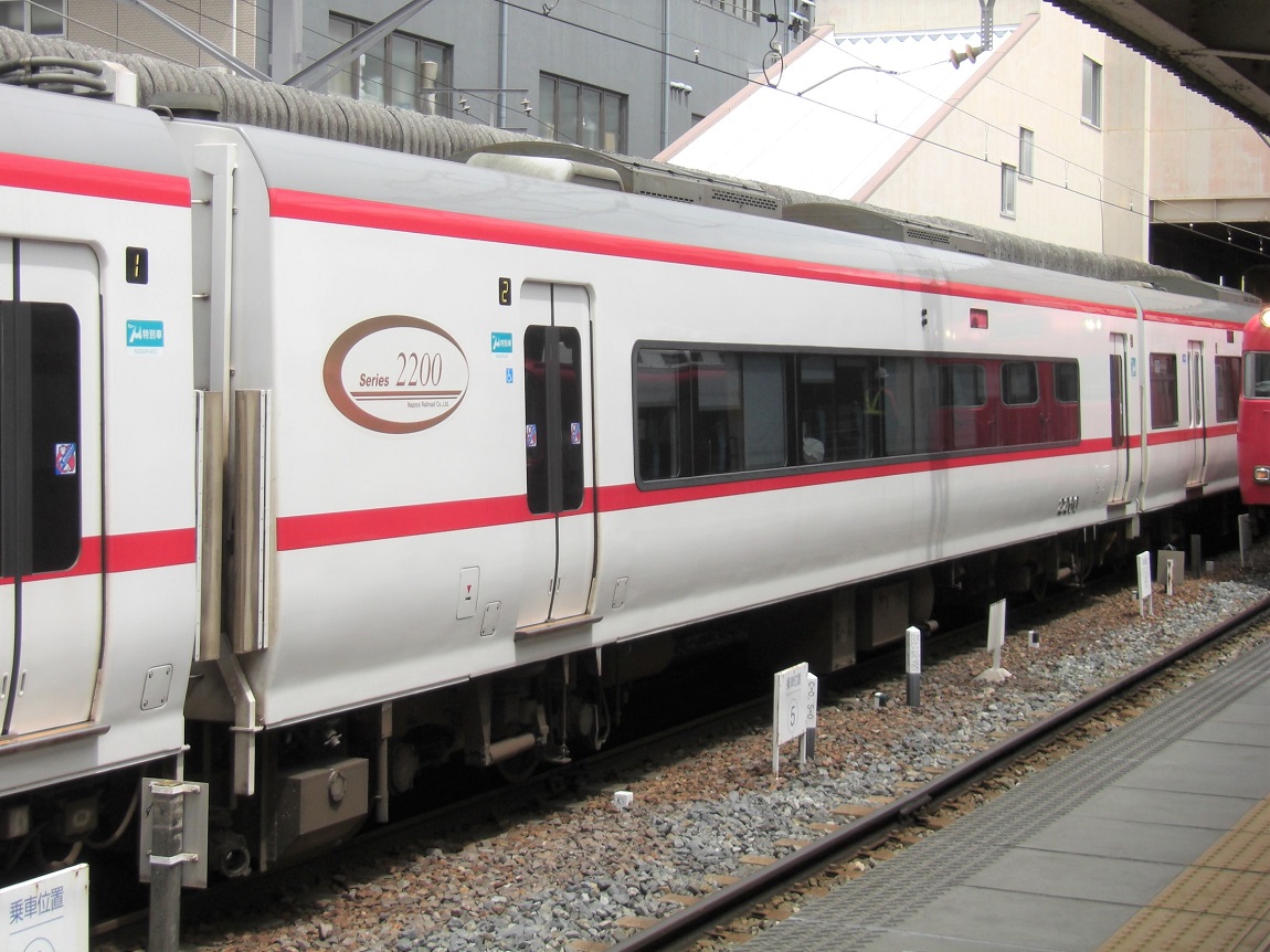 | 【音量注意】 2200系神宮前発車 (youtube) 古いカメラでの映像の為、画質および音質に関してはご容赦ください。 暗くてよくわかりませんが中部国際空港行きの2200系特急です。登場当時なんとなくJR東日本の253系に似ていると話題になりましたが、実物を見てみると受ける印象は全く異なります。 |