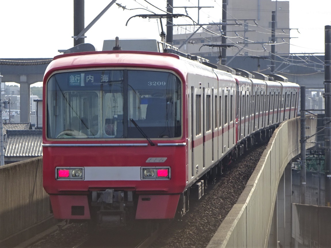 2200系と連結して特急運用に用いられることの多い3100系は、2019年より徐々に2200系に合わせた塗装に変更されています。…が、この塗装変更ものんびり進んでいるので、全編成の塗装を変更する気があるのかどうかについては何とも言えません。最近の名鉄にはよくある事ではありますが、前面の帯デザインがちょっと今一つなように思えます…。 撮影地:神宮前 |