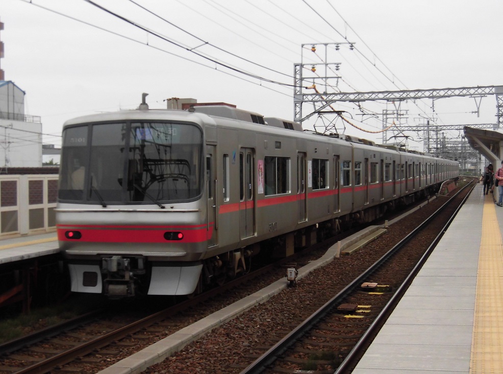 名鉄では過去より、「車体を新製、機器は流用」という車両が数多く存在していました。代表的なものを挙げるなら6000系車体のツリカケ車3300系、同様形態でパノラマカーの車体を持つ7300系、長らく瀬戸線の主だった6750系等が有名だと思われます。これらの車両が名鉄のイメージでもあったのですが、ステンレス車体のVVVF車両が主流となった現在ではさすがにもうこういった車両は現れないだろう…と思ったら現れてしまいました。それがこの車両です。 この車両は、1000系の機器流用車。近年名鉄では、2000系を除いた全ての特急を一部特別車にすると発表。1000系の全車特別車の編成が除籍されてしまいました。というわけで、その1000系の機器を流用してこの車両を作った、というわけです。このため、一見新しい車体なのに屋根上や床下はそれなりに古いという不思議な車両。こんな見た目ですが当然、種車が種車なのでチョッパ制御です。 尚、2023年時点では築港線の運用は何故か全て5000系で行われています。 上写真は5002F。神宮前にて。 |