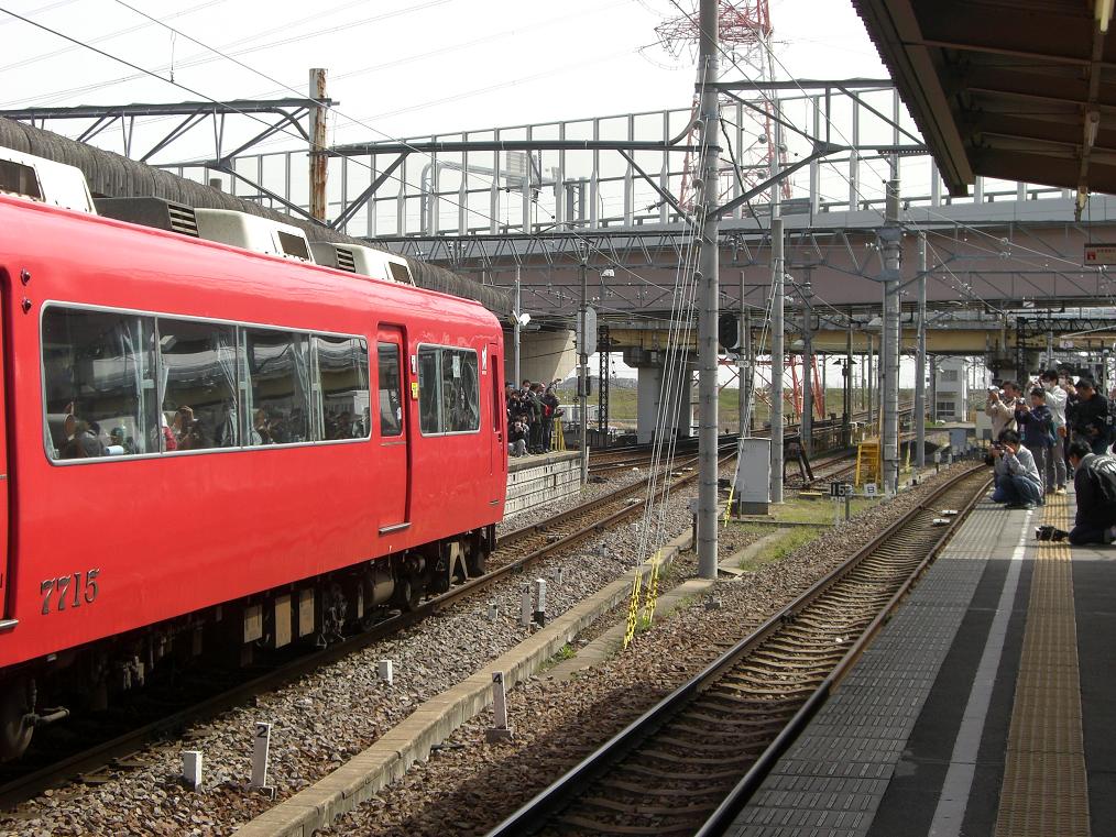 特急需要の増大に伴う7000系に連結する2両編成を作るため、および支線方面へ直通する特急運用のために登場した車両で、見た目は普通ですがこれでも特急型。以前は白帯も巻かれていました。一応、ミュージックホーンもついてます。 車内は基本的に7000系の特急仕様と同一で、そのためイスは非常に豪華。ただ、7000系含め、座席指定の特急としては少々変わった部分があります。まずデッキ等が全くないこと。もう1つは、指定席に区分される席にロングシートが含まれていること。そのため、車内を見てもあんまり特急らしさは感じません。 7000系統最後の生き残りとなった車両でしたが、2010年3月21日のさよなら運転を最後に引退し、7000系「パノラマカー」の一族は終焉の時を迎えました。 上写真は7711F、豊明にて。 |