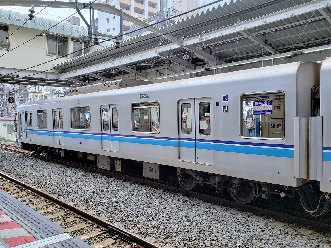 ・106F 門前仲町発車 有楽町線からまさかの転属を果たし東西線での活躍を行っている07系。有楽町線時代の弱冷房車表示を剥がした跡も少し残っていたりします。車内は他の車両と比べると若干色遣いも異なっており、少し豪華な印象。これが来ると嬉しくなります。 |