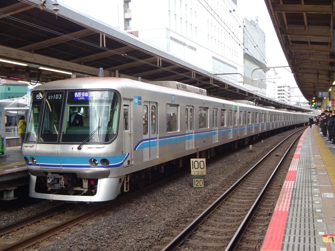 ・104F更新車妙典発着 2番線到着→3番線発車の順となります。B修が施された07系はモーターも三菱PMSMに変わりました。最初に聞こえる警笛は10000系などで聞くことが出来る物ですが、07系はB修より前にこの音に変わっていました。 |