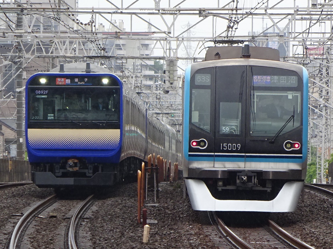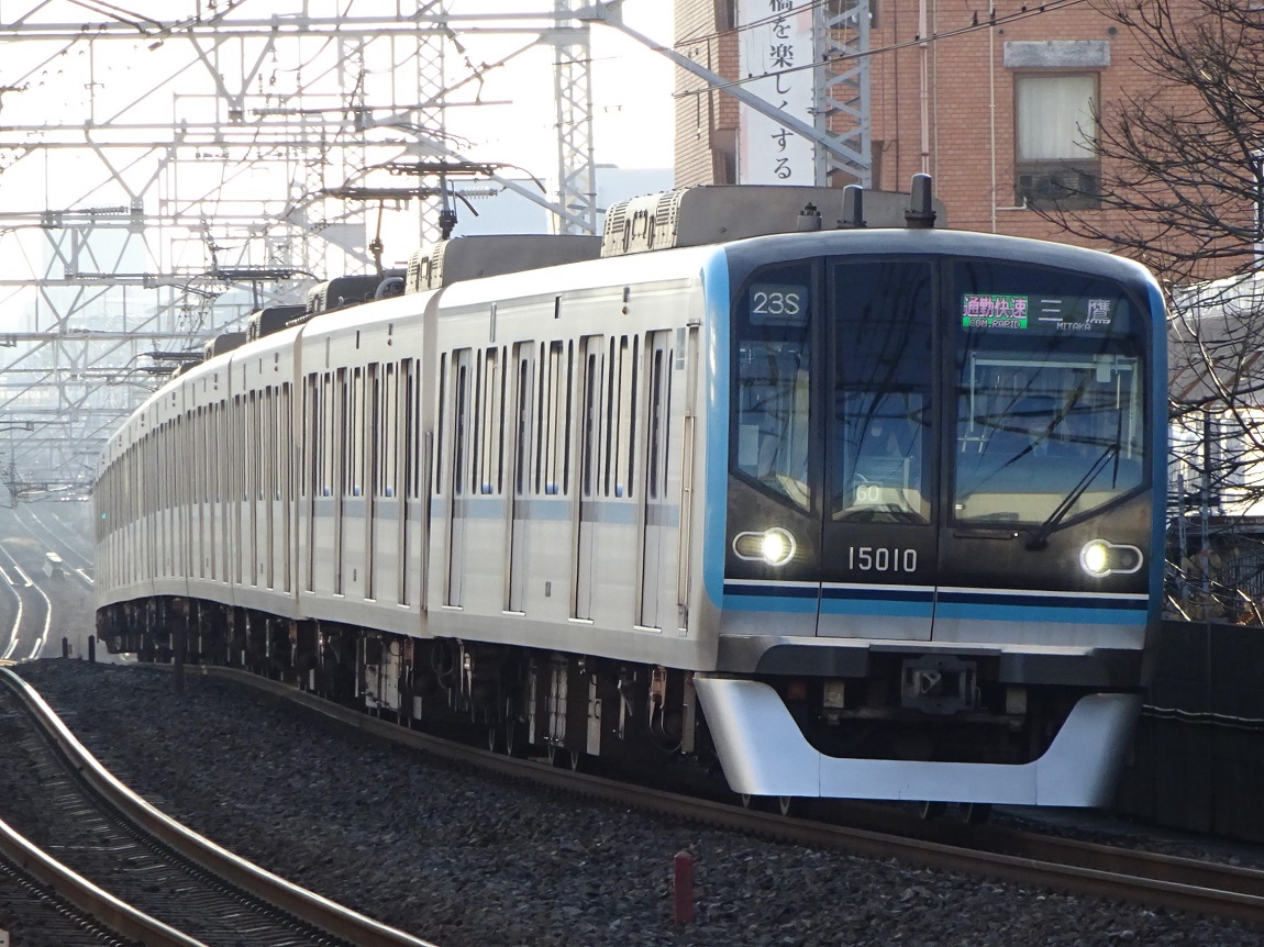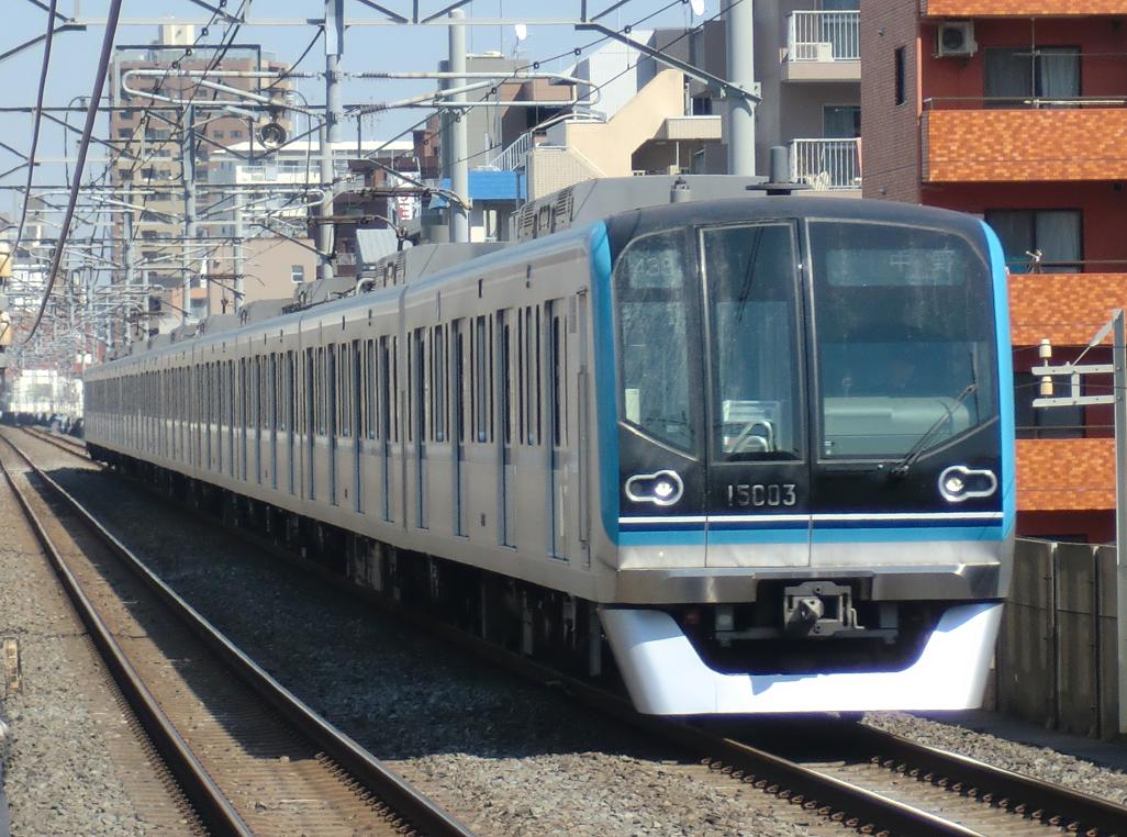 | ・15000系 門前仲町発着(youtube) 編成番号は動画内に記載しています。 10000系をベースに、東西線用のワイドドア車として登場した15000系。当初はこの車両も05系として導入するつもりだったようですが、もしそうなっていたとしたら、もはや形式の意味が無くなっていた気がします。 モーターは三菱IGBTで、PMSMの本格採用には至りませんでした。 | |