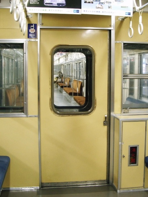 車内C ステンレス車 ドアB オレンジ壁 戸袋窓あり |