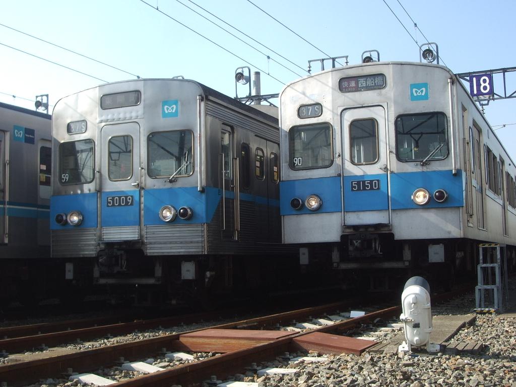| ・5000系59編成西船橋発車(youtube) ※古いデジカメでの撮影です。音質、音量、画質はご容赦ください。※ 編成内部にいろんな内装を持った車両が存在していたり、なんかブレーキ解除音が可愛い音してたり、窓の小さい扉があったり・・・。今はインドネシアで活躍しているこの編成、投石とかにめげずに末長く活躍を続けていただきたいものです。 | |