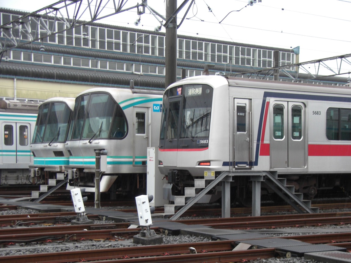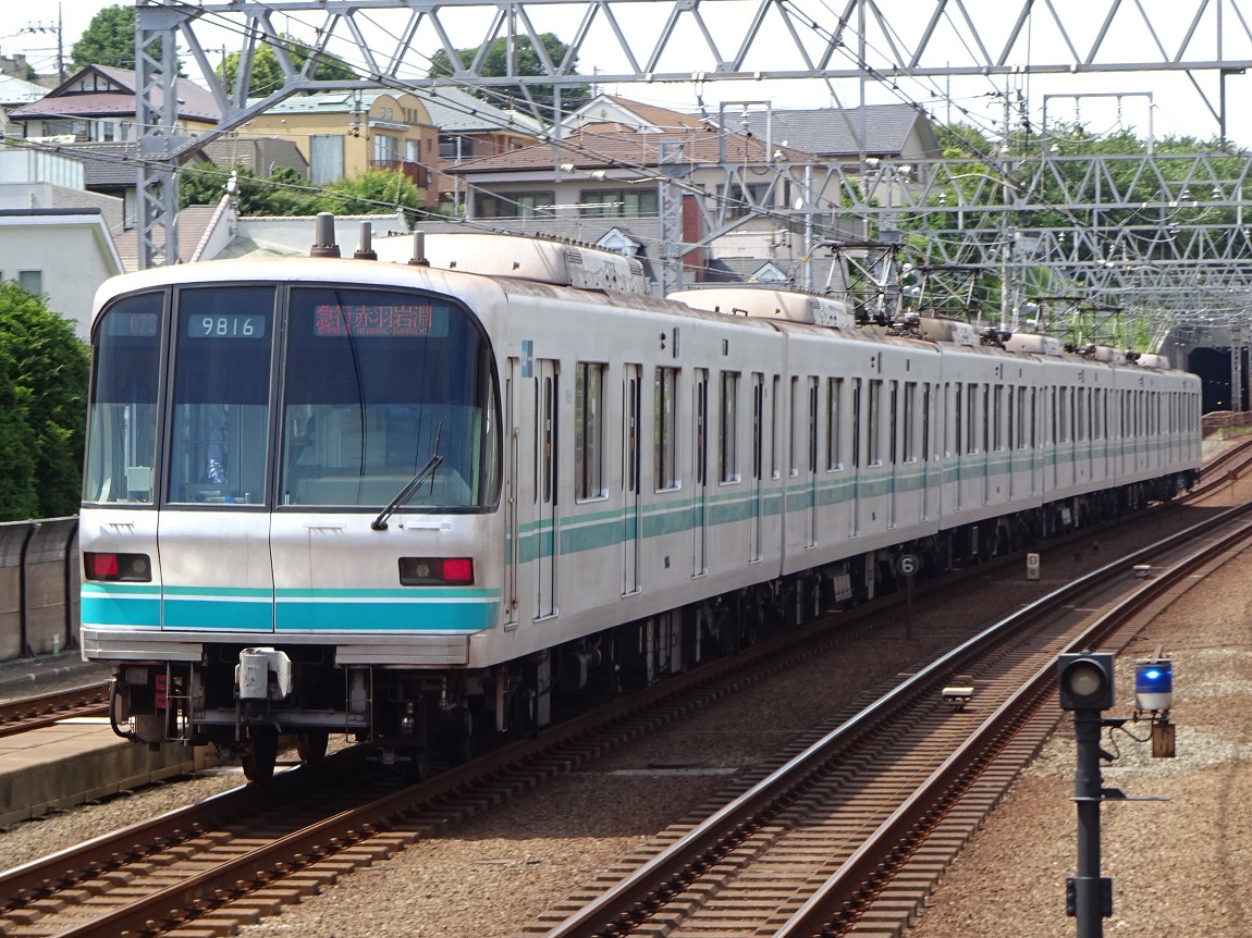 1991年の南北線開業当初からの車両。当初は4両でしたが、第2期開業時に6両編成へと変更されました。試作車と1次車のみGTOインバータ制御を採用しており、東京メトロの車両としては珍しい存在です。試作車は三菱、1次車は日立のGTOインバータを採用しており、編成によってはこの2種が混在しているものもあるようです。そういった数編成のみの珍編成を除けば、IGBTインバータ制御の静かな車両が多め。その後、東急目黒線と埼玉高速鉄道への直通運転が開始され、現在に至っています。 見た目はどう見てもいわゆる0系シリーズの一員ですが、南北線は開業当初からの車両がこの車両となるため、従来通りの形式の付け方となり9000系となりました。 上写真は9112F。多摩川にて。 |