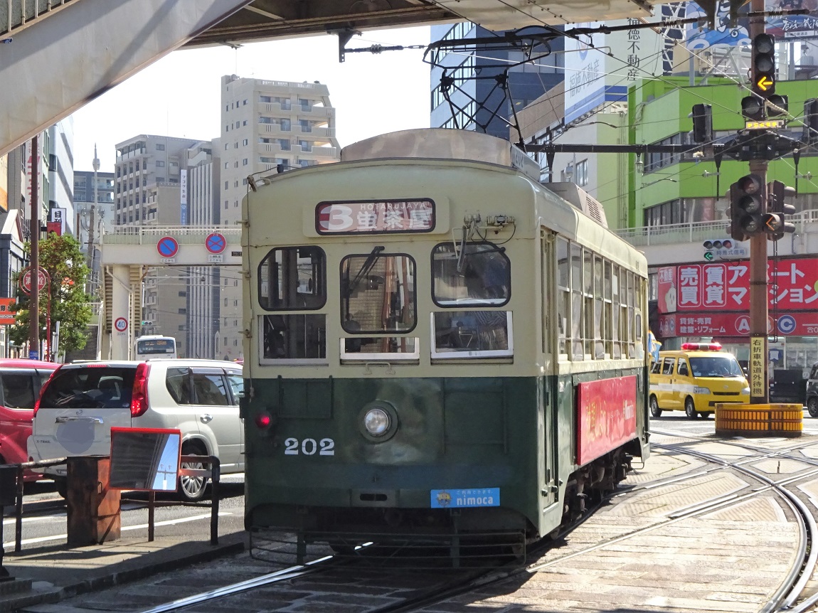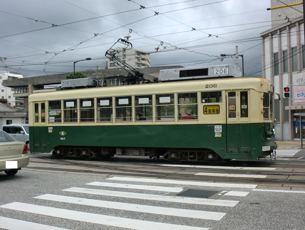 大橋〜住吉の延伸を控え、輸送力増強が必要になった事から1950年に登場した200形は、長崎電気軌道にとって初のボギー車となりました。細かく分けると4形式に区分され、登場から60年以上経過した今でも長崎電気軌道の主力車両として運行されています。以下、形式ごとの説明を。 201形…1950年から製造されたグループで、日立製作所製。電装品や制御装置は三菱電機製。 202形…同じく1950年から製造されたグループで、日本車輛製。電装品や制御装置は三菱電機製。201形と異なり、ウィンドシル・ヘッダーがあるため、そこが違いとなります。 211形…1951年に導入されたグループで、日立製作所製。電装品や制御装置は日立製作所製。201・202形と比べて台車の吊りリンク機構が改良されています。 300形…1953年に導入されたグループで、日立製作所製。電装品や制御装置は日立製作所製。台車ごとにブレーキシリンダが設けられ、前照灯が製造された当初から前面窓下に設けられ、客室内の近代化も図られました。 これら4形式は、後の冷房化に合わせた更新工事によって見た目の差は殆ど(ウィンドシル・ヘッダーは残存)無くなっています。また、2017年には300形の310号を観光列車「みなと」にリニューアル。古い車両ではありますが、今暫くは運行が続くのかもしれませんね。 上写真は309、浦上車庫前にて。 |
