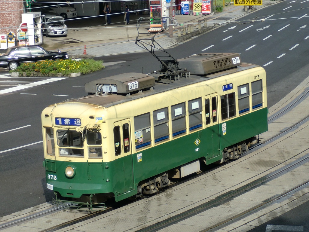 ・浦上車庫前発着集(youtube) 古めかしい車両もまだまだ目立っている長崎電気軌道ですが、吊り掛け式ながら車体は新しい車両や、バリアフリーに対応した新型車両も在籍しています。浦上車庫前で少し待ってみた間に次々やって来た車両を撮影したのですが、最後の5000形以外は全て吊り掛け車です。特に1800形は見た目が近代的なので吊り掛け式である事が意外に思えてしまいます。 本当は5000形だけ映像を分けようとも思ったのですが、モーター音があまりよく分からない映像になってしまったので纏めてしまいました。 |