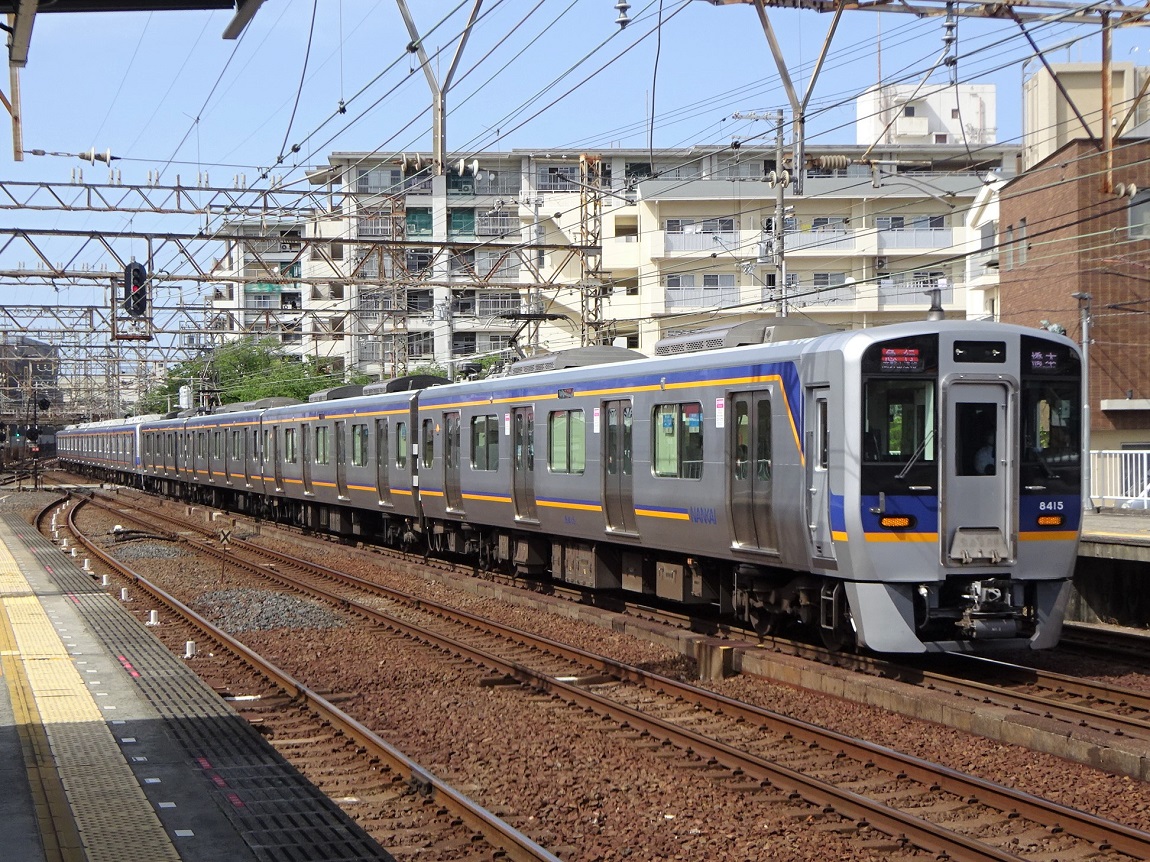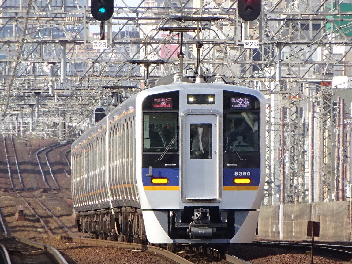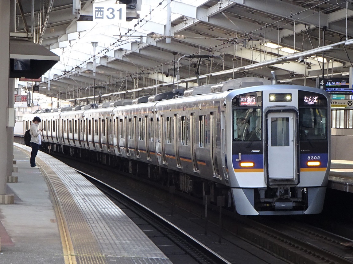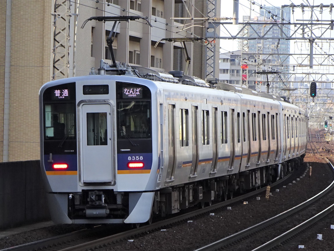 ・8300系 難波・みさき公園発車(youtube) 南海8300系は、老朽化した7000系統の代替を目的に導入された最新型車両で、今後は6000系の置換にも導入される予定のようです。走行音が非常に特徴的ですが、SiCやPMSMではないようで、全閉内扇形誘導電動機を採用している事からこの様な音になっているとの事。 |