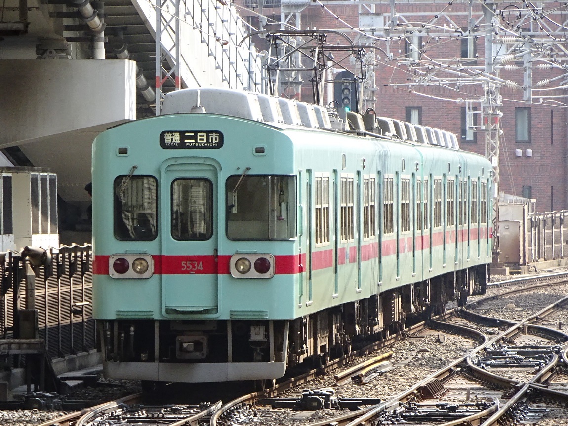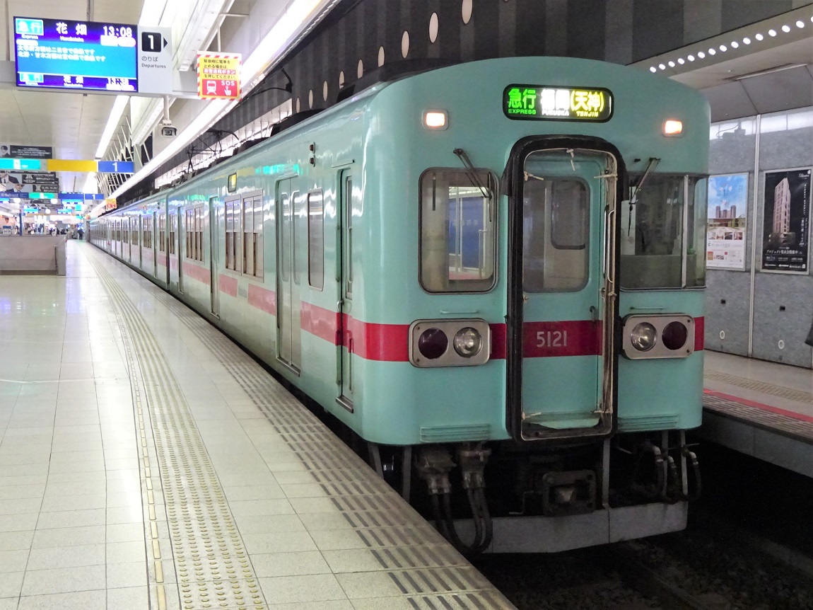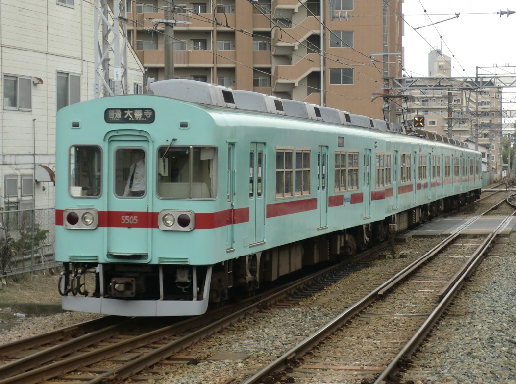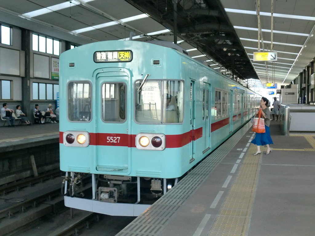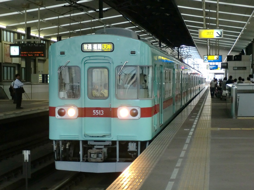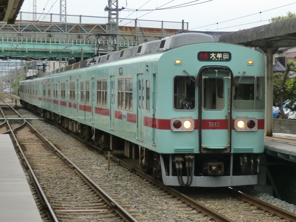 1975年から導入された19m3扉車で、本線系統の主力車となっています。現在貝塚線で1本だけ活躍している313形も元々は本線で活躍していた車両であり、5000形はそれらを代替するために導入されました。これによって車両の大型化が図られたことになります。置き換えるべき車両が多かったことから1991年までの長期にわたって製造されています。1990年代にこれが導入されていたというのは何だか不思議でもありますが、それだけ使いやすい車両だったのかもしれません。 デザインは基本的に前に導入された600形を元にしているものの、標識灯がさらに大きくなり、運転台側の前面窓がパノラミックウィンドウになったのが大きな変更点。2022年現在の本線系統では最も古い車両ですが、特急運用にも多く用いられており、他のツーマン運用の車両と運用上の区分はありません。2016年に9000形が登場したことで置き換えが始まってはいるものの、その速度ものんびりとしており、今しばらくはその姿を見ることが出来そうです。 上写真は5113F(小郡にて) |