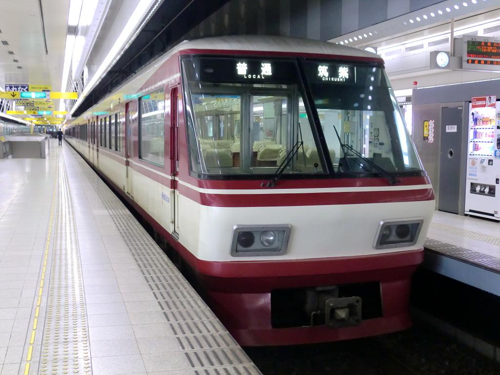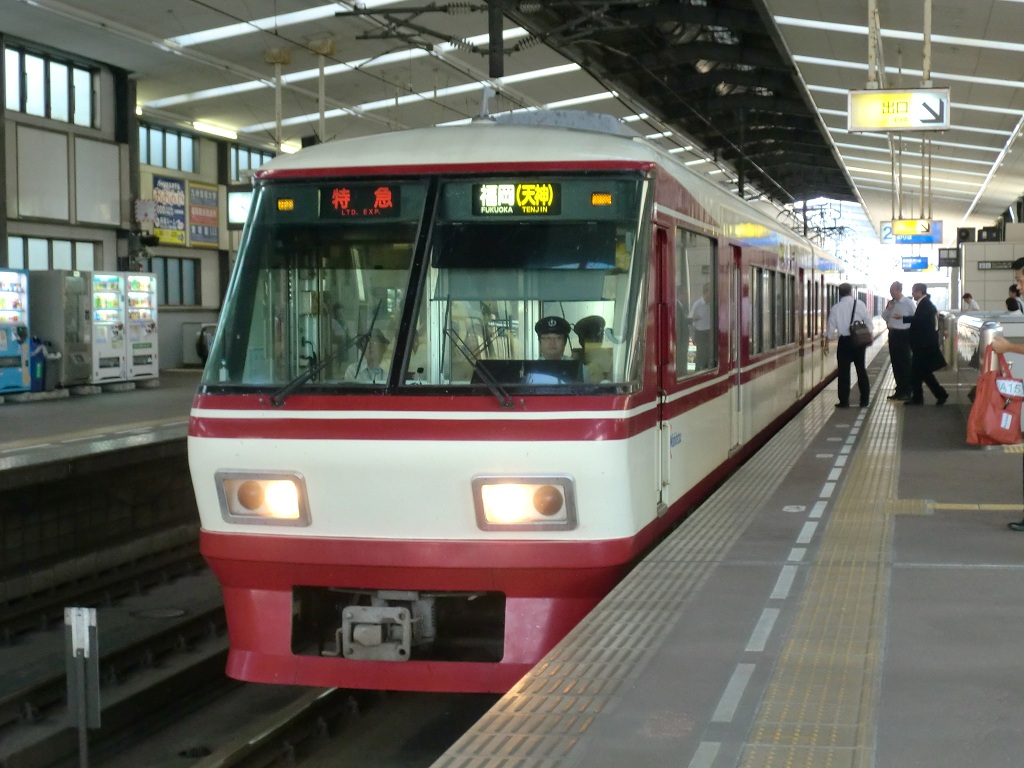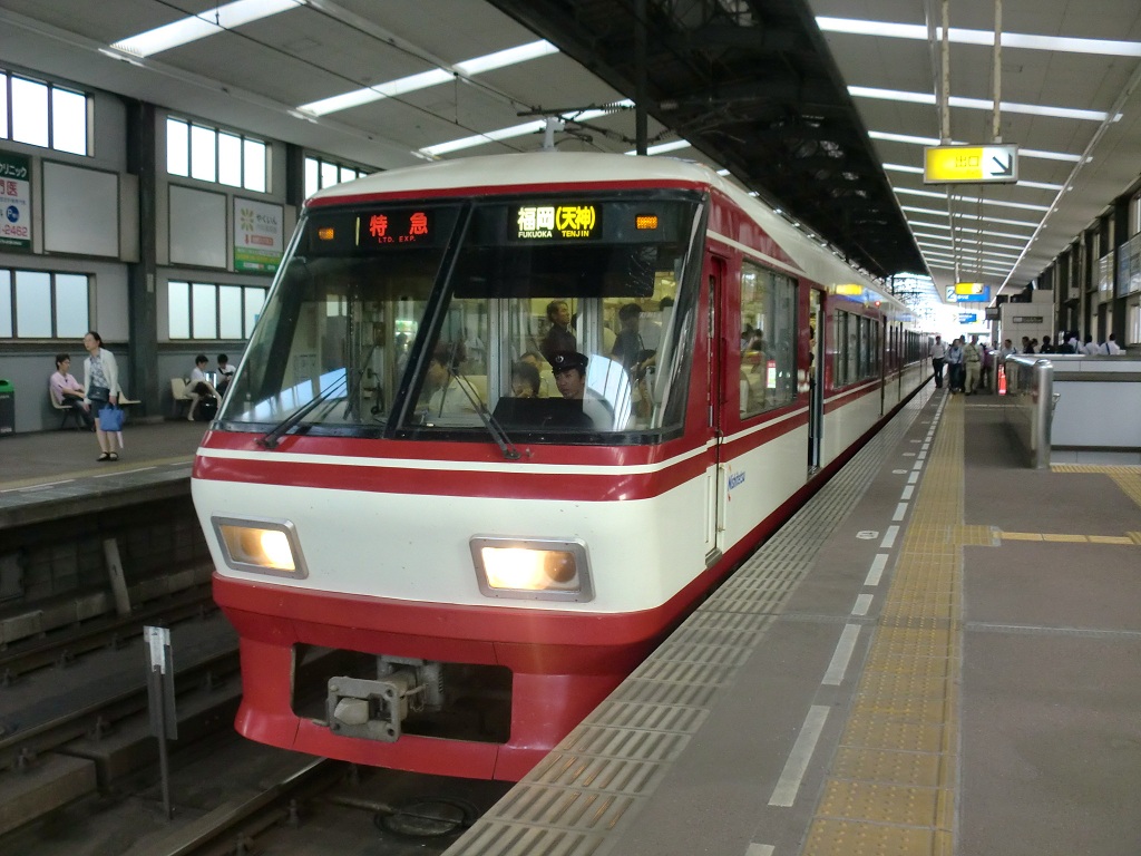 1989年に導入された特急形車両で、2000形で運用されていた特急を置き換えて瞬く間に西鉄の主役へと躍り出ました。2扉、転換クロスシート、そして展望座席の設置、とすぐ近くを走るJR九州に負けない為のやる気がひしひしと感じられます。バブリーな見た目で豪華な車両ですが、下周りは5000形と共通、すなわち抵抗制御です。やっぱり西鉄は西鉄ですね。 3000形が導入された今でもこの車両=西鉄、といった印象がありますが、特急をメインに20年以上運行され続けてきたため老朽化が早かったようで、観光列車に改造された車両も含めて、2017年9月までに引退してしまいました。2本の観光列車は3000形に引き継がれています。 上写真は編成不明(薬院にて) |