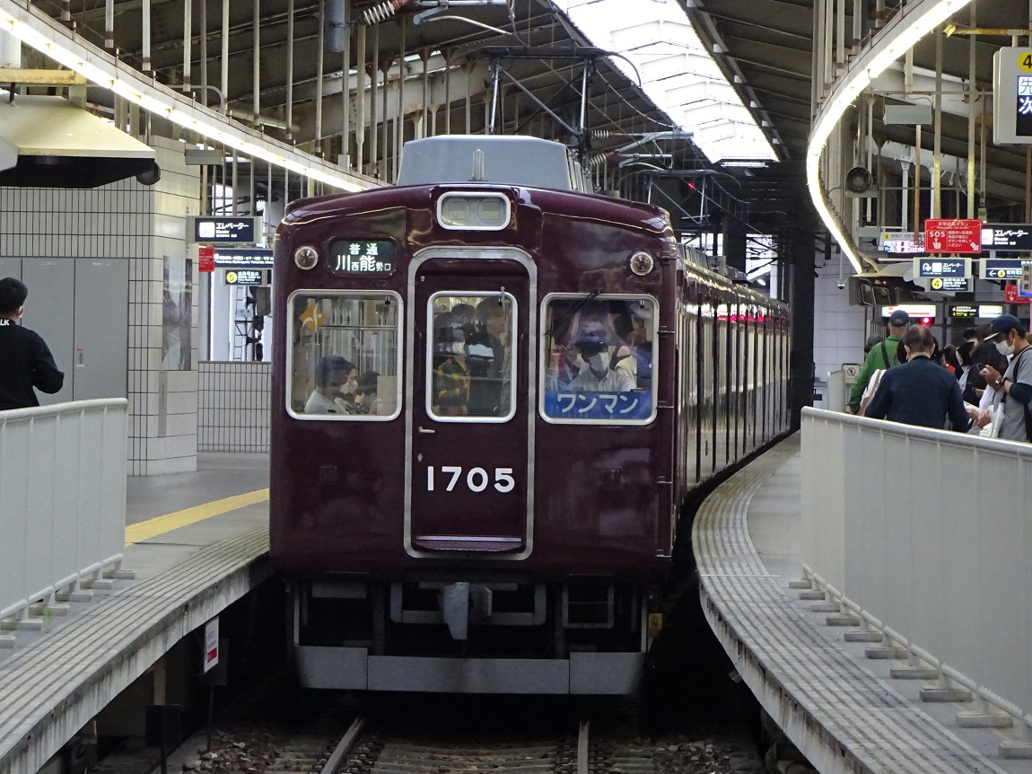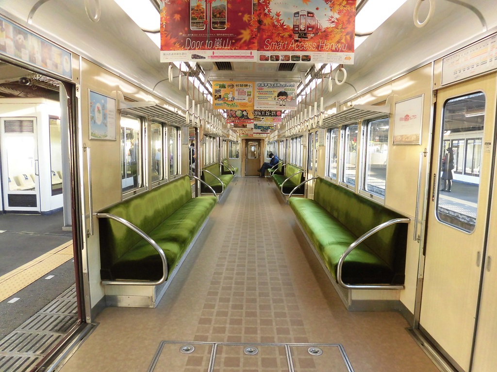 ・1700系走行音 【妙見線】鶯の森→滝山(1分46秒:580KB) 見た目や内装こそ今の阪急電車と比べて遜色ないものの、いざ動き出すととても重々しい、いかにも古そうな音がします。ワンマン運転を行っている為、自動放送とドアブザーが設置されています。 |