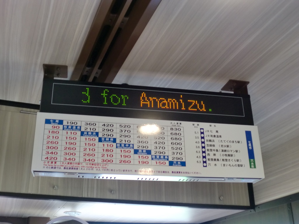 | NT302 里海号で、青系の車内。 能登中島にて |