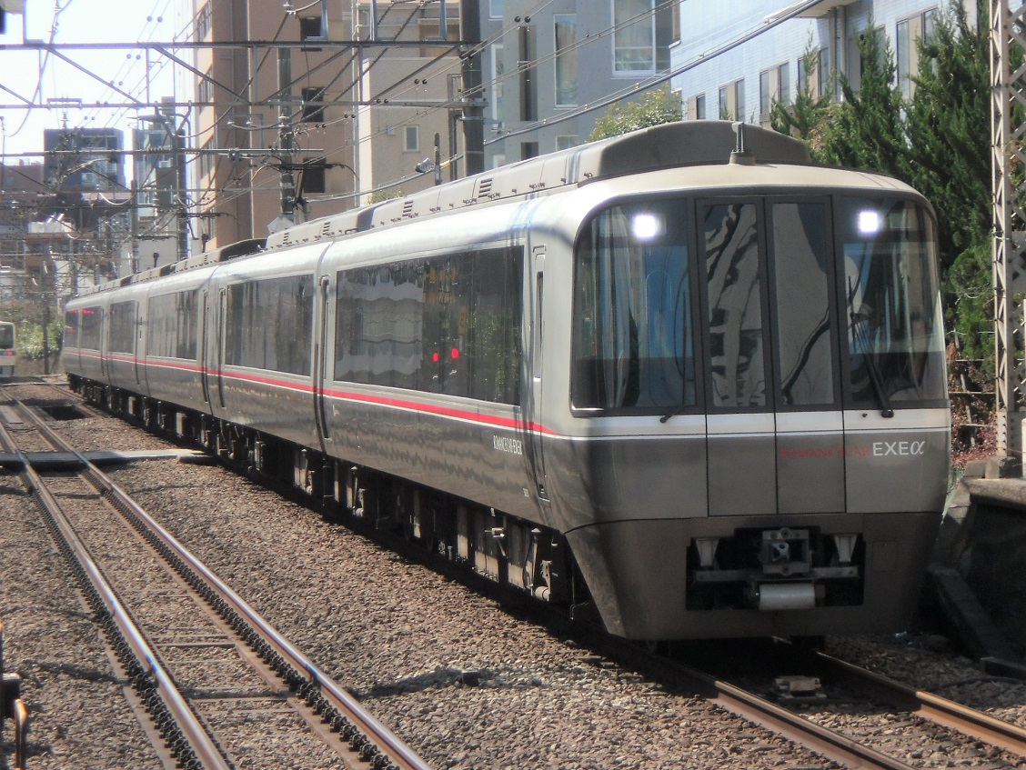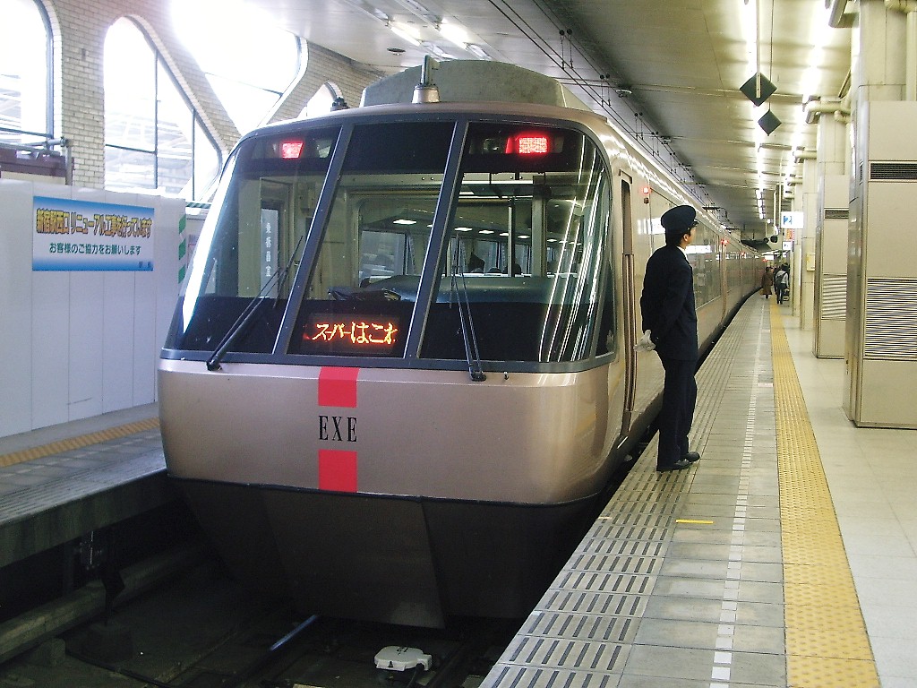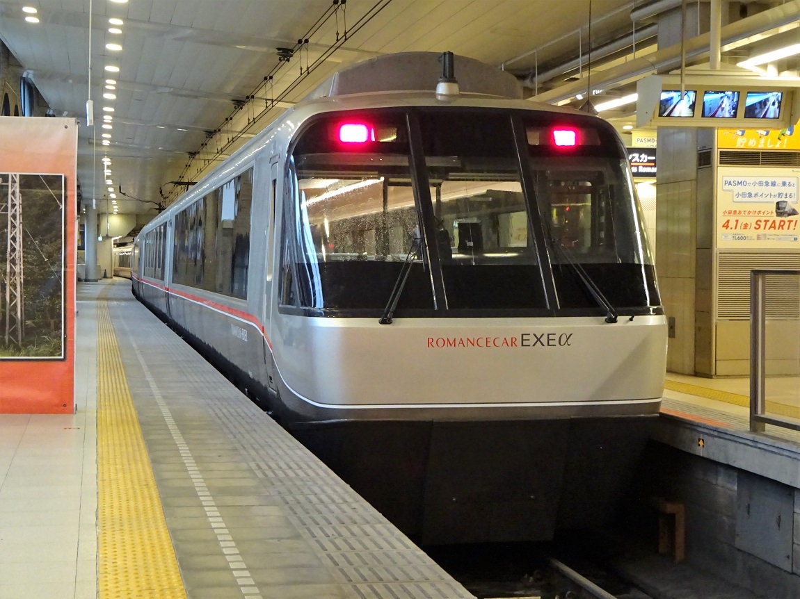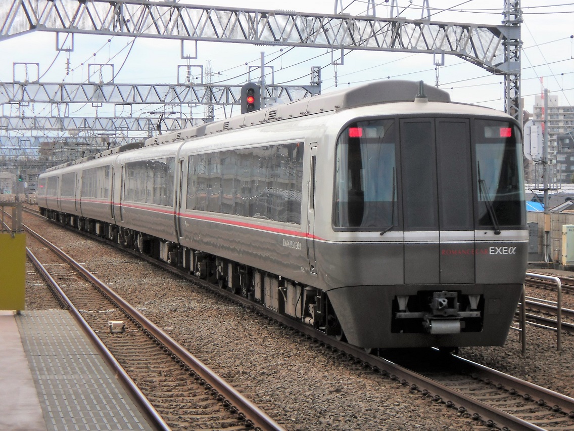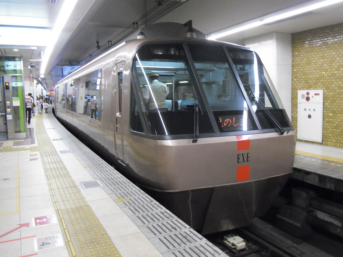 | 目つきの楽しいロマンスカーNSEを置き換えるために登場した形式。愛称は「EXE」。「Excellent Express」の略称です。その愛称の通りさまざまな運転用途に対応しており、中でも分割運用をこなす事が出来るのが大きく、「さがみ/えのしま」といった特急などもEXEを使って運用されています。 その他、先代の20000形RSEと同様、連接構造と展望席設置は見送られています。最も、運転席越しに景色は綺麗に見ることができるのですが、展望列車で売っていた小田急にとってはちょっと地味な存在と言えるかもしれません。ただ、特急の柔軟な運用には欠かせない存在なので、最も多く在籍しているロマンスカーで、江ノ島線の特急などをこの車両が支えているのは言うまでもありません。 上写真は新宿にて。 |