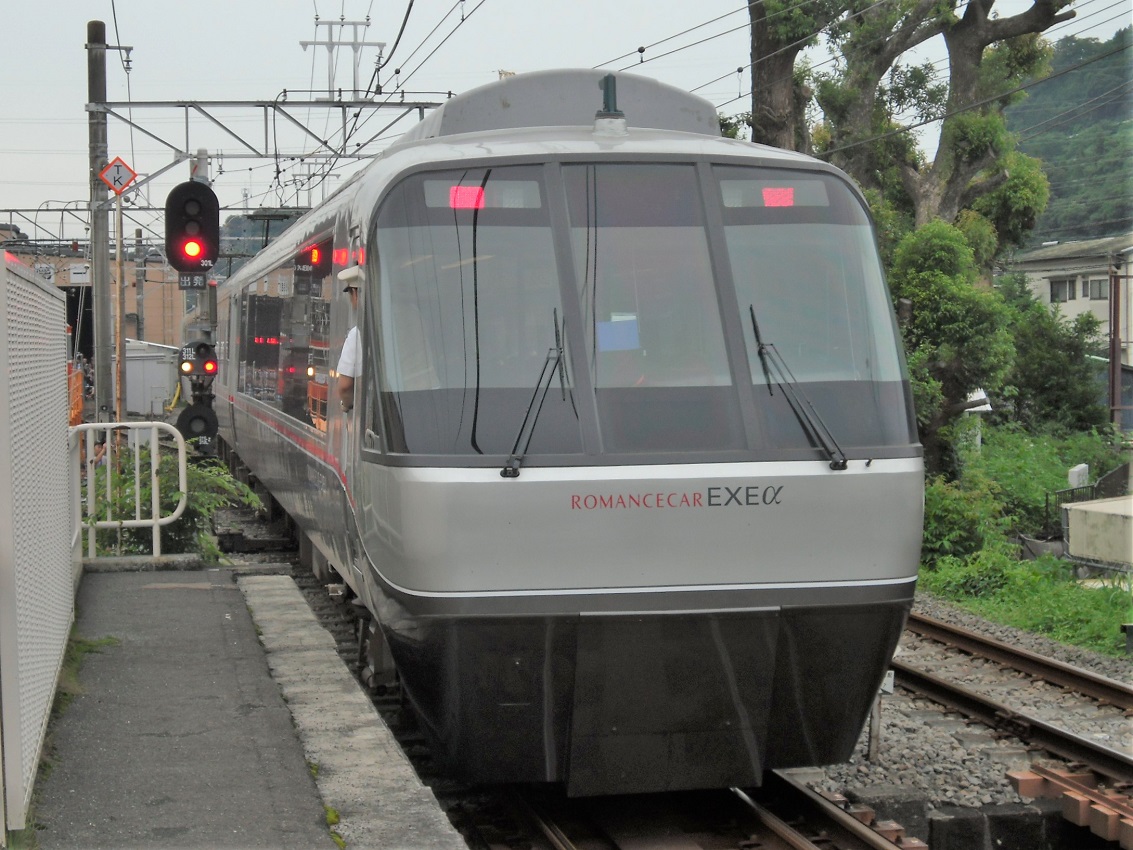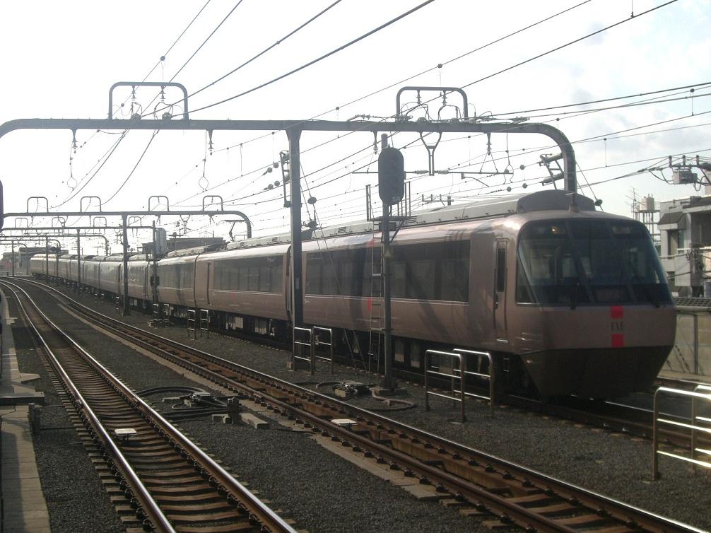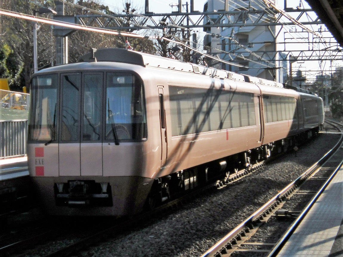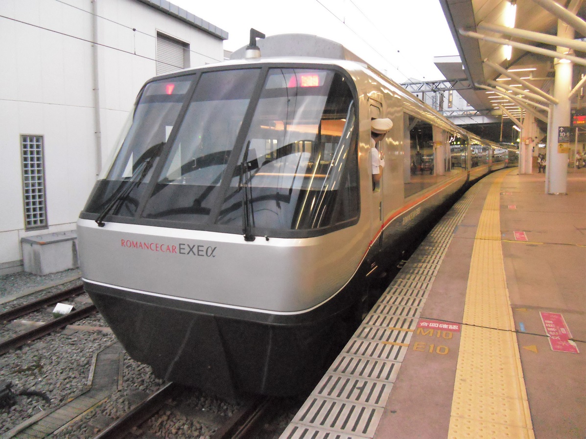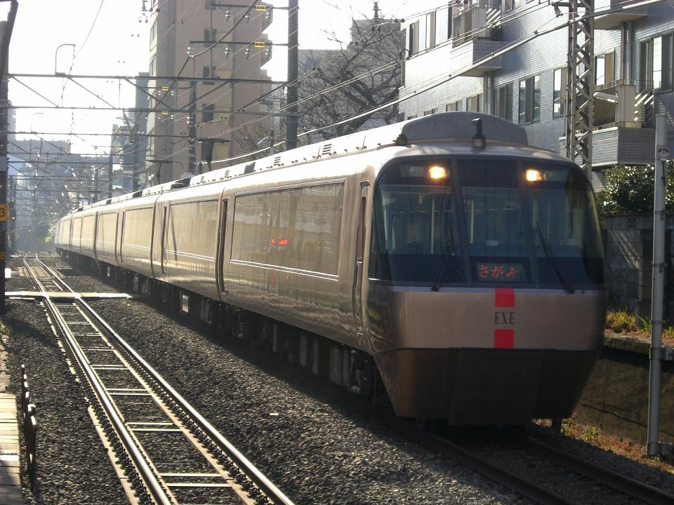 | 目つきの楽しいロマンスカーNSEを置き換えるために登場した形式。愛称は「EXE」。「Excellent Express」の略称です。その愛称の通りさまざまな運転用途に対応しており、中でも分割運用をこなす事が出来るのが大きく、「さがみ/えのしま」といった特急などもEXEを使って運用されています。 その他、先代の20000形RSEと同様、連接構造と展望席設置は見送られています。最も、運転席越しに景色は綺麗に見ることができるのですが、展望列車で売っていた小田急にとってはちょっと地味な存在と言えるかもしれません。ただ、特急の柔軟な運用には欠かせない存在なので、最も多く在籍しているロマンスカーで、江ノ島線の特急などをこの車両が支えているのは言うまでもありません。 上写真は新宿にて。 |