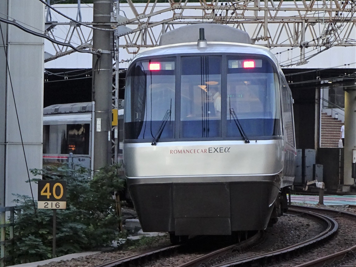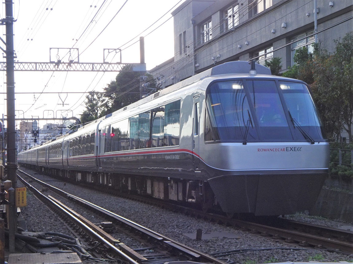 2017年より、EXEのリニューアルが行われ、愛称も「EXEα」となりました。デザインは岡部憲明アーキテクチャーネットワークが担当。塗装や内装が大幅に変わったのは勿論ですが、列車名が表示されなくなったのも大きな変化でしょうか。全てのEXEがEXEαとなった場合、列車名を表示するロマンスカーはMSEのみとなります。 撮影地:新宿 |
