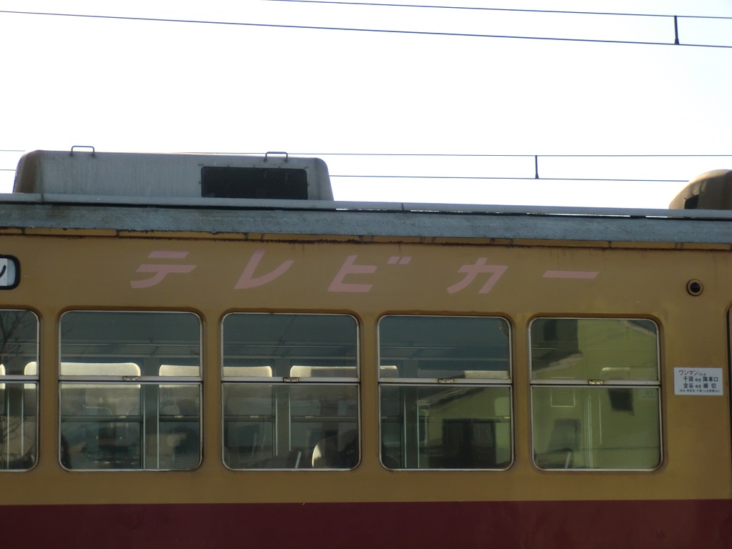老朽化と検査期限切れの為、2014年2月限りで営業を終了する事になりましたが、この営業終了間近の頃、京阪電鉄時代の特急マークが復活し、側面に「テレビカー」の文字も設置され、往時を偲ぶ事が出来るようになっていました。