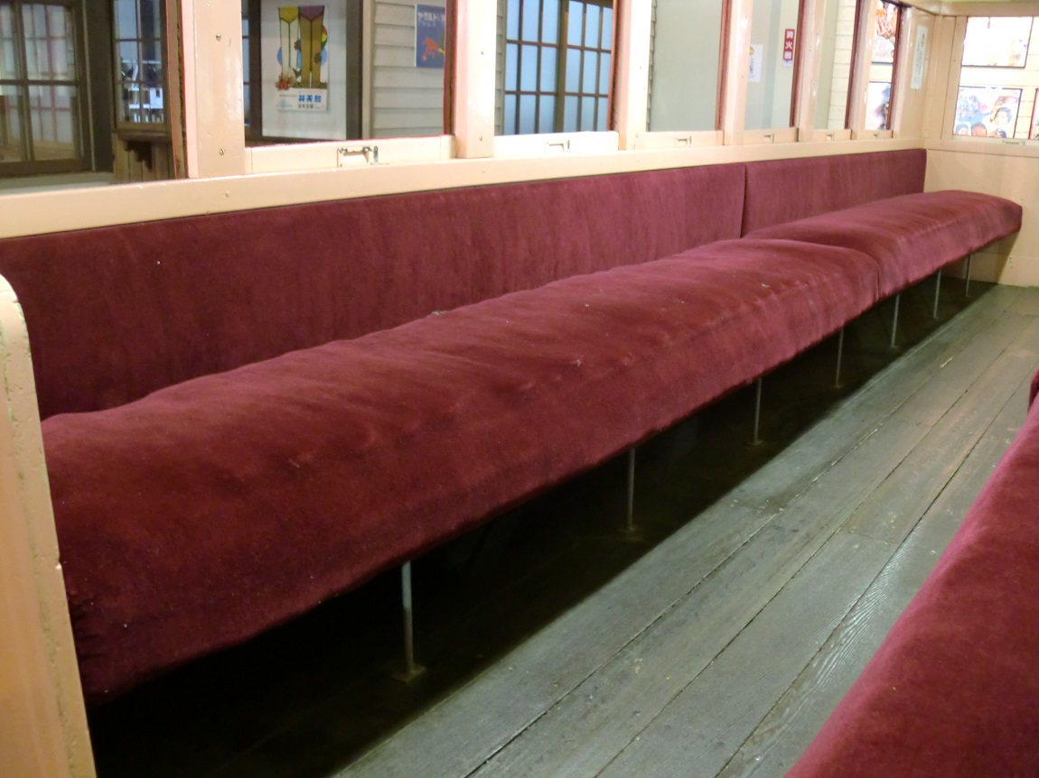 井川線が旅客路線となってからも運用が続いた物の、他の客車と比べて小さい事が災いし1990年に廃車。以降は新金谷駅前でSL運行日にオープンする「プラザ・ロコ」に保存されており、車内に入る事も可能です。