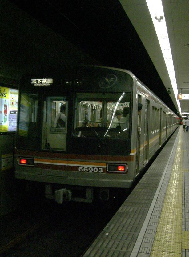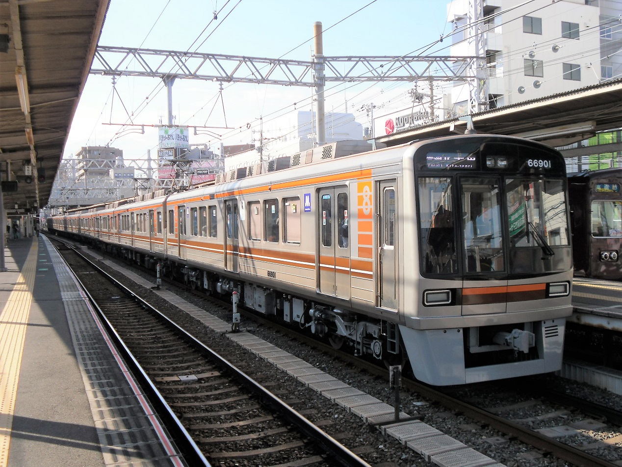 | ・66系走行音 【前期】堺筋線:扇町〜南森町(1分21秒:439KB) 【後期】堺筋線:南森町〜扇町(1分13秒:398KB) 前期車はGTO、後期車はIGBTでどちらも日立となります。前者はドアチャイムではなくドアブザーが設置されているのが特徴です。 |