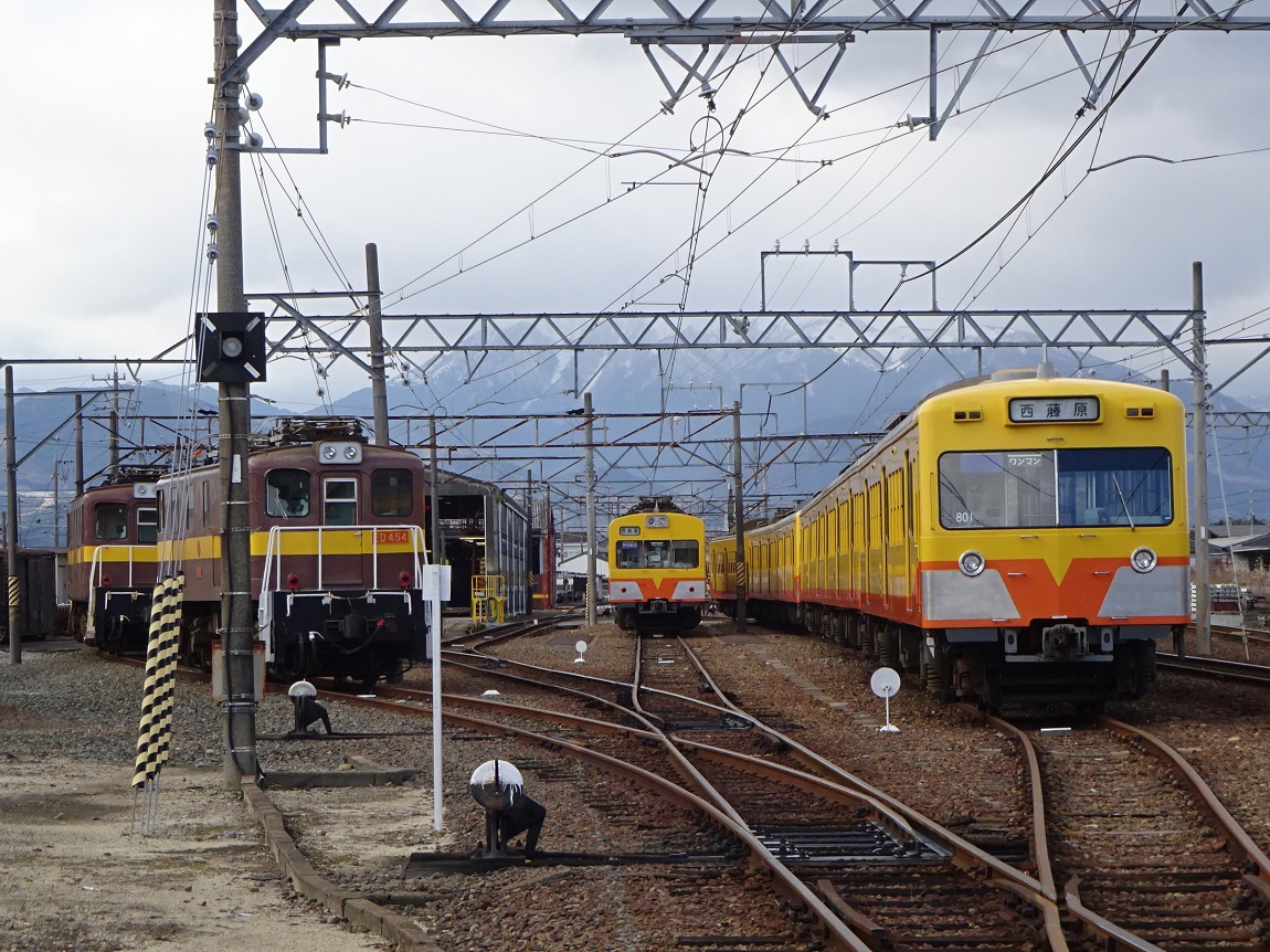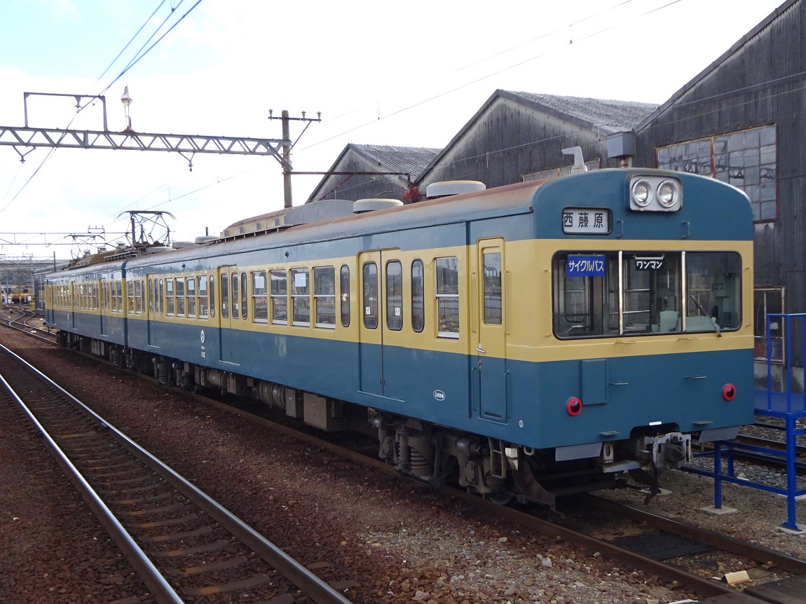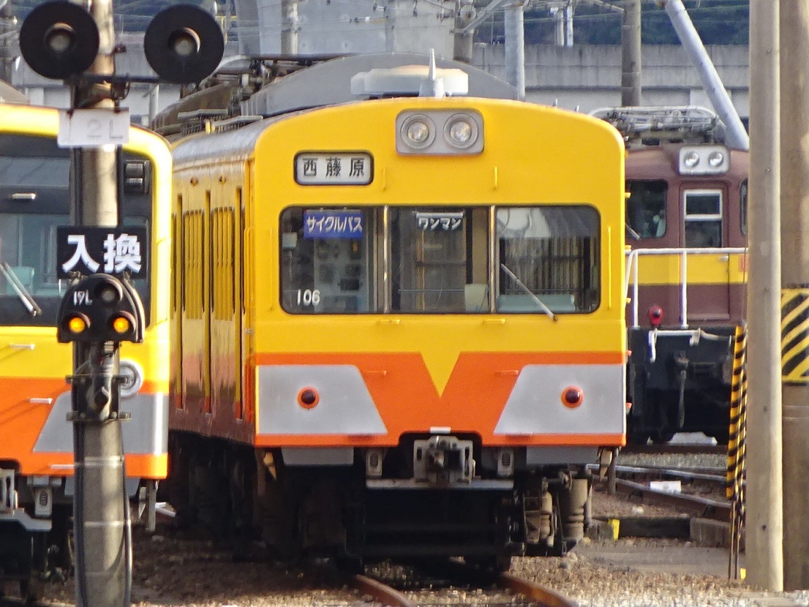 2020年4月末より、101Fを用いて1970年代の三岐鉄道の塗装がリバイバルされています。このリバイバルに際して前面の飾り帯も撤去されているので、他の2編成とは見た目の印象が大分異なっています。 尚、2023年時点で101Fは現役最古の西武鉄道由来の車両となっており、それ故このような特別塗装の車両として白羽の矢が立ったのかもしれません。 撮影地:保々 |