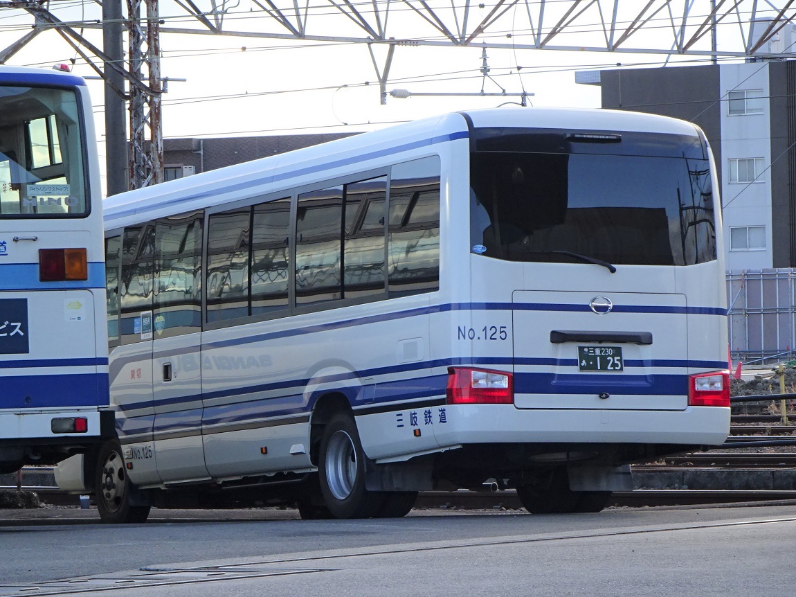 三岐鉄道のバス部門は、電車とは全く異なる青系の塗装となっています。長らく日野自動車の車両ばかりを用いていましたが、近年はその限りではないようです。また、近鉄富田駅〜キオクシア間の特急バス用に連接バスを導入したのが近年の大きな話題で、同車は「サンサンシャトル」の愛称があります。この車両に限り、鉄道線の塗装を踏襲しているのも大きな特徴です。 最終更新:2023/12/2 ページの作成 |