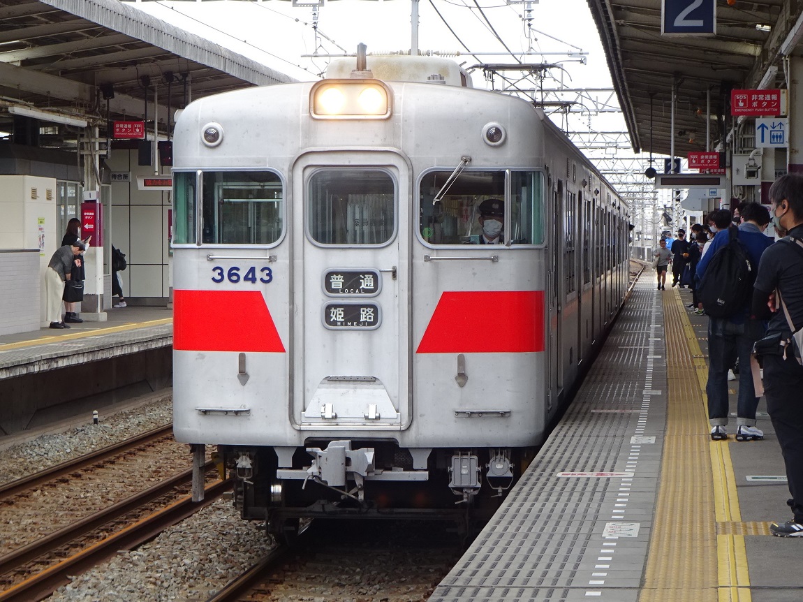 | ・3050系 山陽明石発着(youtube) 3000系統は、大別すると3000系、3050系、3100系、3200系がありますが基本的に見た目は同じです。長らく主力として運行が続いてきましたが、状態こそ良いもののかなり古い車両なので6000系による置き換えが進められています。 到着は3062F、発車は3064Fとなります。 |