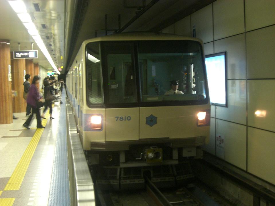 7102F 栄町発車(youtube) 札幌市営7000形は東豊線開業当初からの車両。東豊線は基本的に行先が福住か栄町かの2択なので、後期に製造された一部の車両を除き行先表示が設置されていないのが特徴です。 7000形は電機子チョッパ制御車で、2014年現在、札幌市営地下鉄で唯一VVVFインバータを採用していない車両です。後継となる車両の製造が始まっているようで、そちらが登場すれば置き換えられてしまうものと思われます。記録はお早めに。 |
