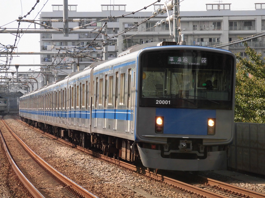 近年の鉄道車両の標準車体となった日立の「A-Train」。その先駆けとも言える存在がこの車両で、例えば、前面の形は、デザインこそ違えど東武50000系等と瓜二つだったりします。 101系の代替を目的に2000年から導入され、「環境と人に優しい」を車両のテーマとしました。基本的には101系のうち「旧」101系の代替を目的として導入されていたため、旧101系が本線系統から引退した時点で製造は終了。新101系の置き換えには30000系を充てることになりました。 上写真は20101F、中村橋にて。 |