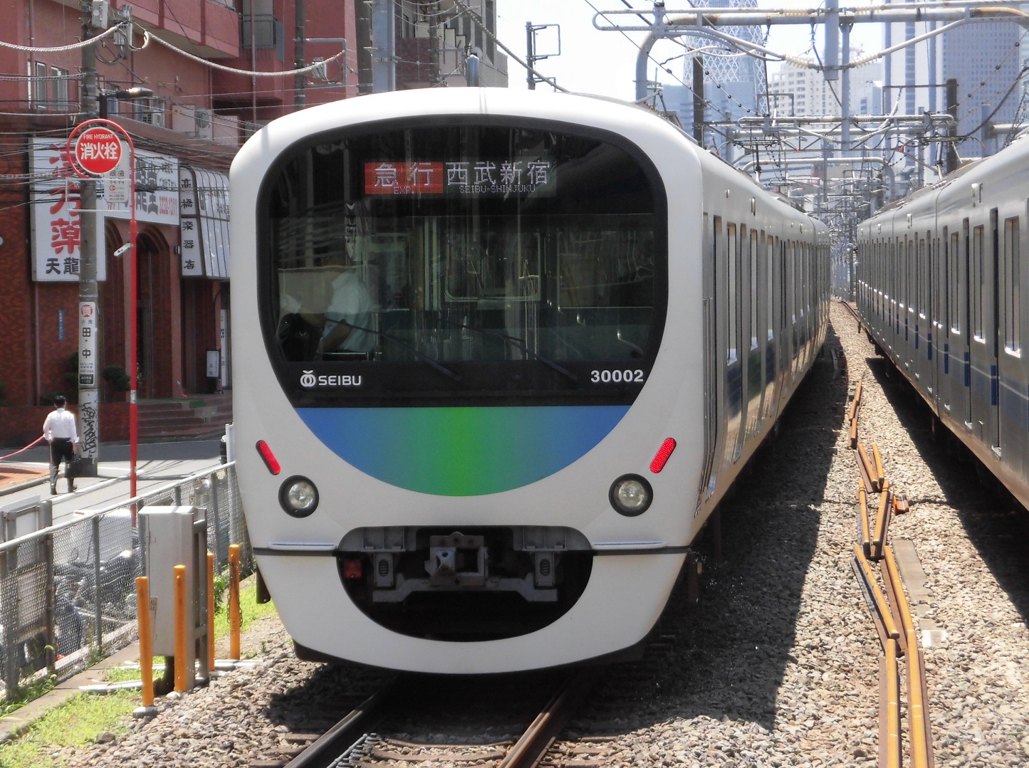 2008年4月末に、新101系(301系)の代替を目的として導入された車両で、コンセプトは「Smile Train」。前面は笑顔のようなイメージにまとめられており、車内も暖かな雰囲気にまとめられています。 一応、この車両も20000系に引き続き日立のA-Trainを採用していますが、随分とデザイン性に富んでいるため、パっと見た印象ではA-Trainのようなシンプルさを感じるのは難しいかもしれません。一応、側面の窓配置などをよく見れば納得も行くのではないでしょうか。尚、幅広車体の通勤車として導入されたA-Trainはこの車両が初めてとなります。 導入当初は新宿線での運用となりましたが、現在は池袋・新宿線両系統で活躍しており、新101系(ワンマン運転用の車両を除く)と3000系を全て置き換えました。現在、西武鉄道の主力車両として運行されています。 上写真は30101F、新所沢〜入曽にて。 |