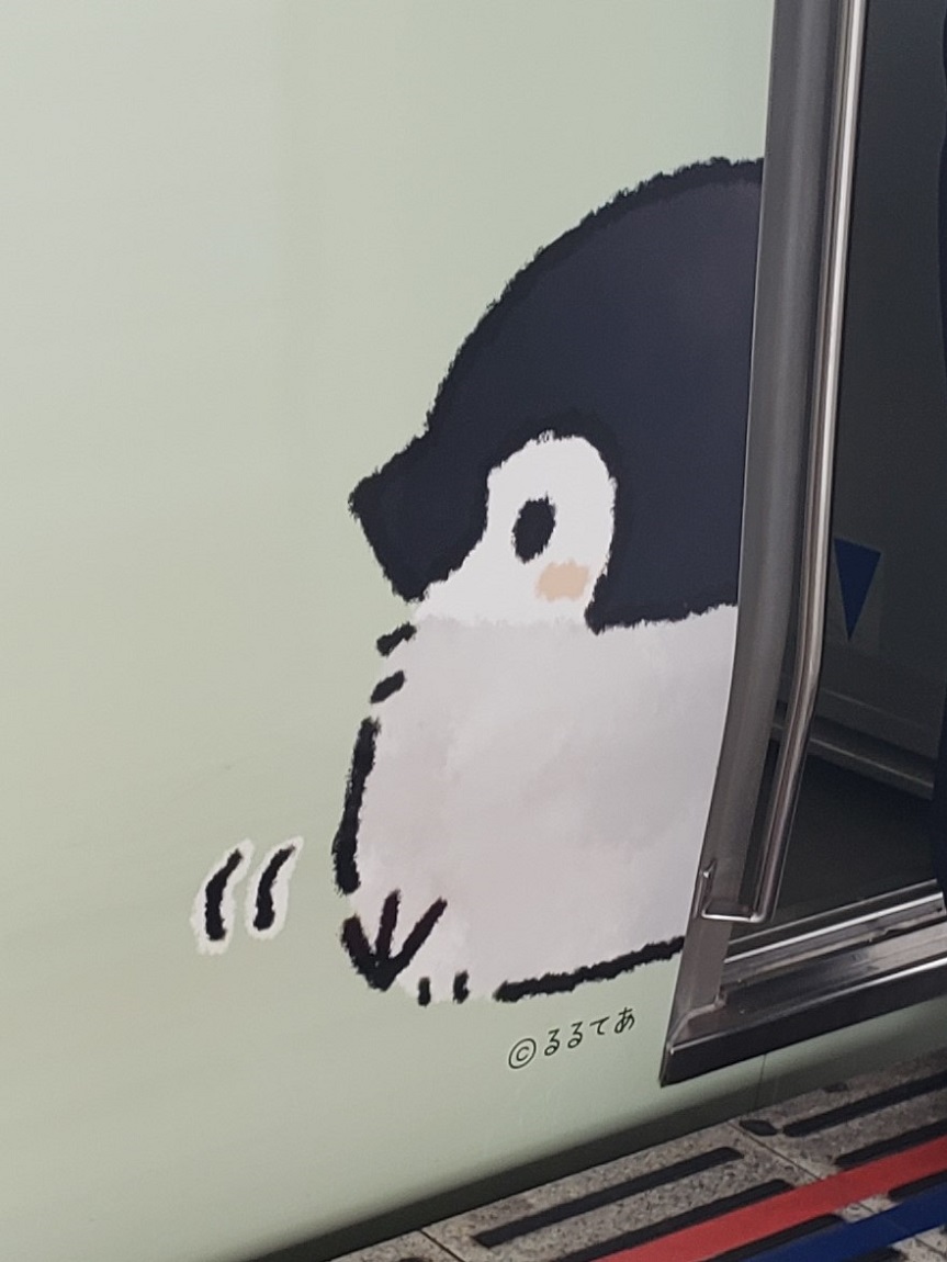貫通扉に描かれているタマゴのイラスト。 時々、タマゴが孵っていたりします。これを探すのもまた楽しいもんです。 |