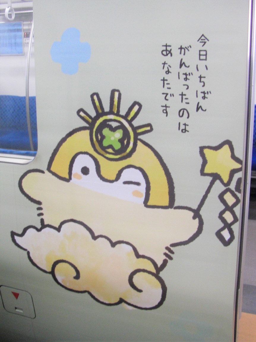 卵型の車体を持つ30000系の10周年と、卵のキャラクター「ぐでたま」の5周年を記念してコラボ列車が登場。車内もぐでたま一色になっているほか、ラッピングもぐでたまと西武線がちゃんとコラボしたネタが多数あるのが面白い所。何よりこの前面は出オチ以外の何物でもない。傑作だと思います。 その後、30000系のデザインとコラボさせたラッピング列車が何度も運転されることになったのですが、この列車はその先駆けと言える存在です。 撮影地:石神井公園 |