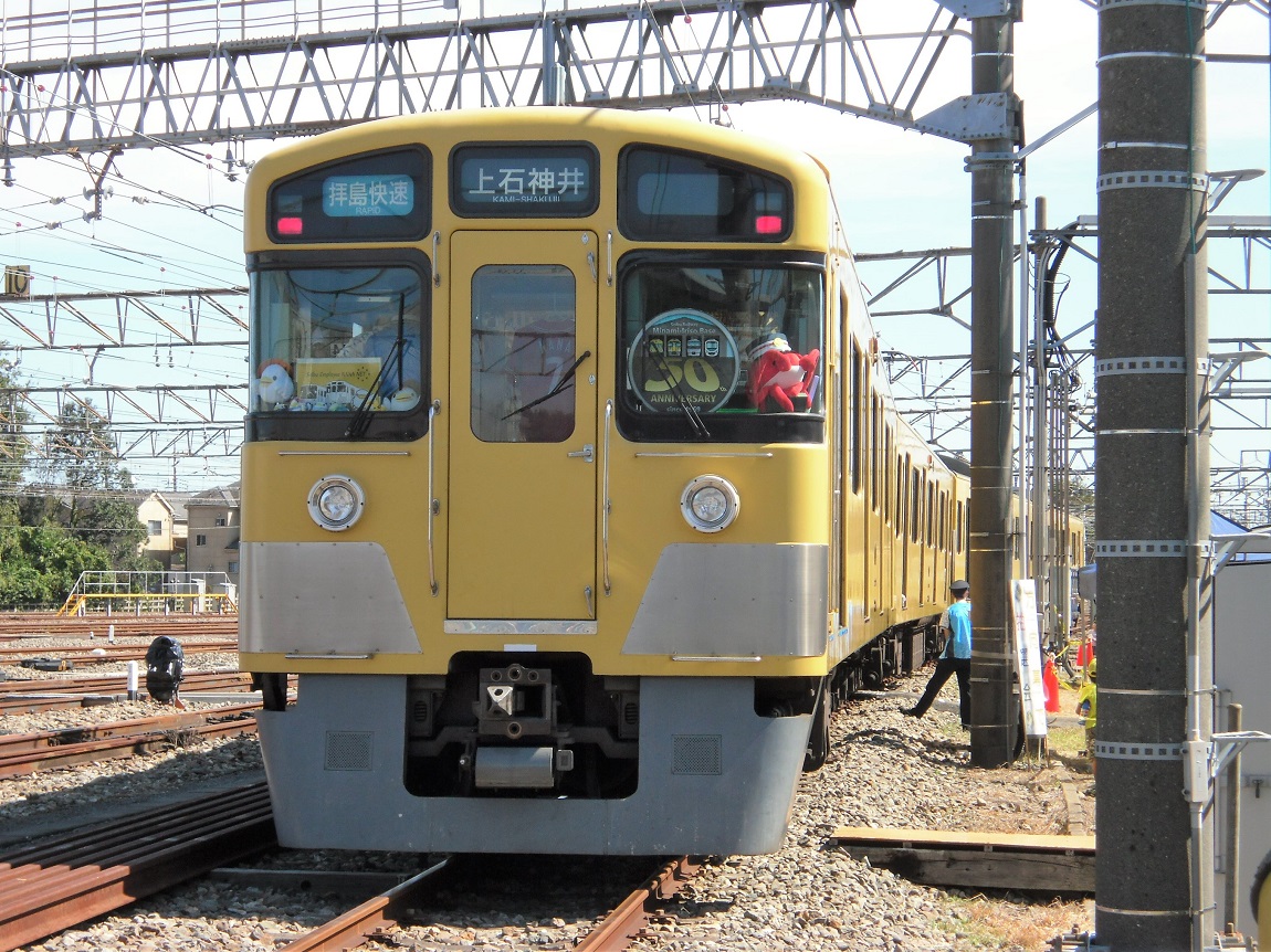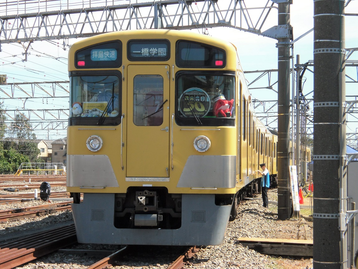 2097編成は編成中2両に三菱製のVVVFインバータ制御を採用しました。VVVFインバータ制御の試験車という位置づけだったものと思われますが、それがかえって扱い辛いと判断されたのか、2016年に新2000系では初めての廃車となってしまいました。現在は先頭車の一部が丸善池袋店に保存されています…と言いたいところなのですが、丸善池袋店が閉店してしまったようなので現状どうなっているかは分かりません。 撮影地:中村橋 | |