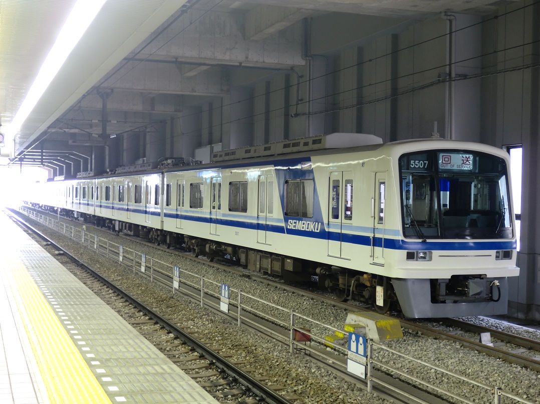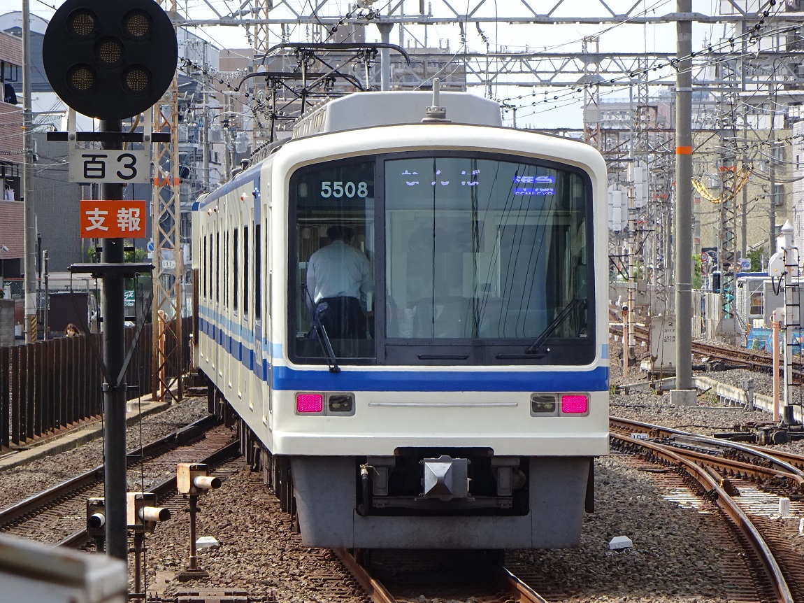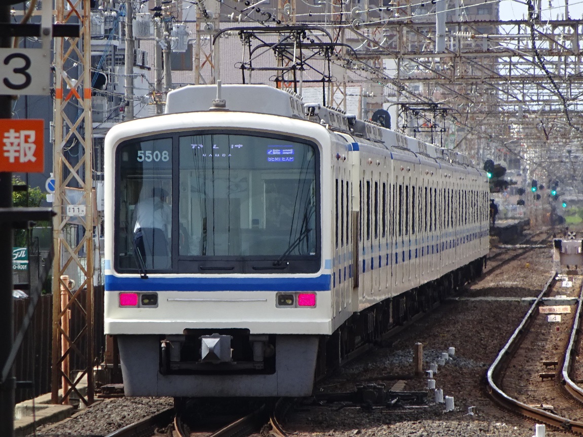 | ・5505F 難波発車(youtube) 日立GTOが残る5000系ですが、近年は更新が進められているのでこの音が聞けなくなる日もそう遠くない事なのかもしれません(動画の編成は更新されているものの日立GTOは維持)。 東武鉄道沿線民としてはこの塗装には親近感を感じます。 |