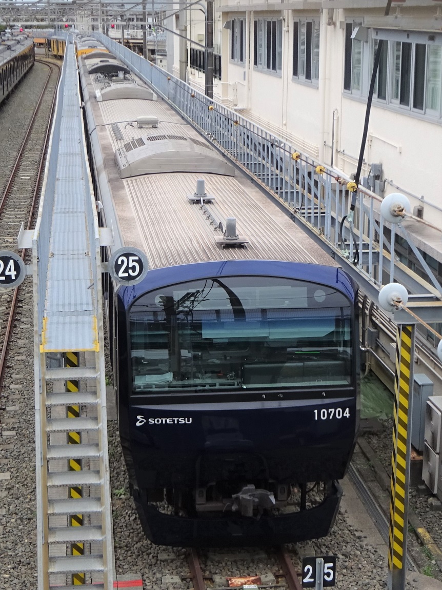 5000系と新6000系の置き換えを目的に2002年に登場した車両で、JR東日本のE231系を基にした車両になりました。正直、乗った印象もE231系そのままです。これは、JR東日本の新津車両センターで製造された為、ほぼE231系と共通設計なのが大きな理由。この車両の登場後、E231系を基にした私鉄車両が多く登場することになり、そのきっかけを作った車両とも言えます。個性の塊のような車両から一気に無個性を極めたような車両に変わってしまったのは賛否両論ありますが、それまでの車両と比べて扱い易いのは間違い無いのでしょう。 相鉄では、創立100周年に向けた「デザインブランドアッププロジェクト」に基づき、新たなデザインとして「ヨコハマネイビーブルー」と呼ばれる塗装を採用し、内装も更新することを決定。改造第1号として2016年に9000系が運行を開始して以来、長い事他の形式には変化がありませんでしたが、2019年末に走行機器更新の為にJR東日本の工場に入場→相鉄帰還後に内外装を改造し、2020年より運行を開始しました。その際、標識灯の位置を変更しているので見た目の印象も変わっています。今後も徐々に更新が進む予定。 上写真は10706F、星川にて。 |
