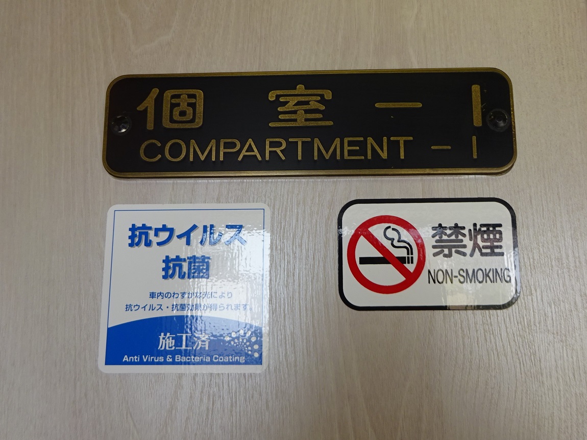 | 照明一例 | 貫通扉 6号車入口 | コンパートメントロゴ | 車内 6号車 | 個室 | 個室操作盤 |