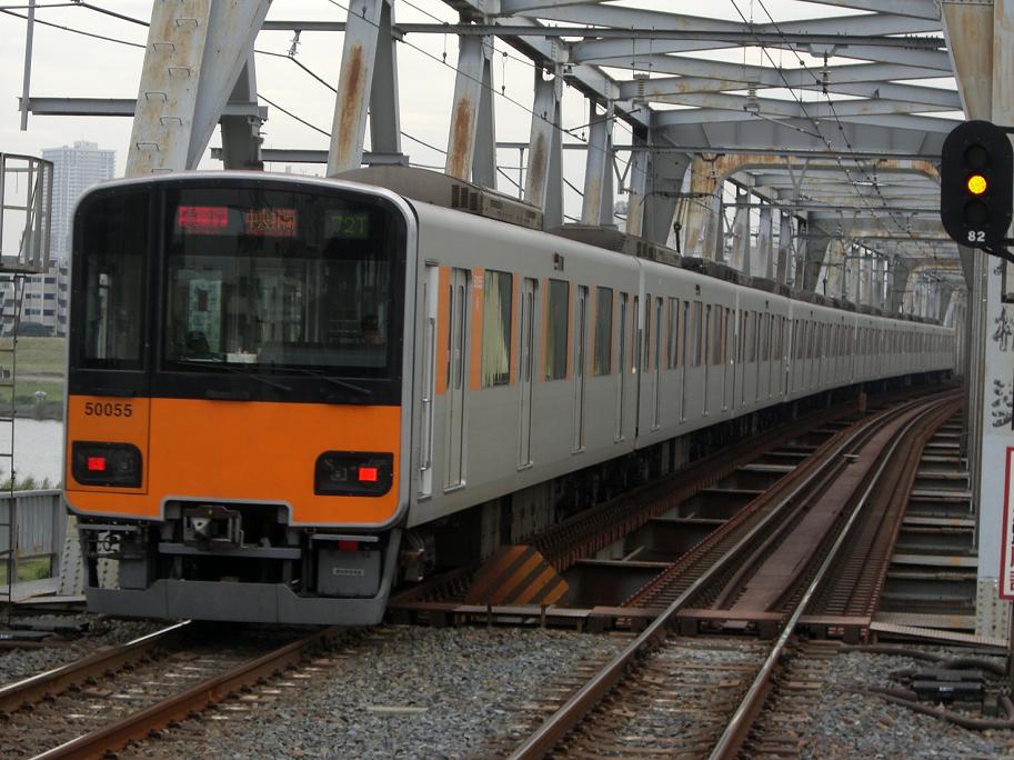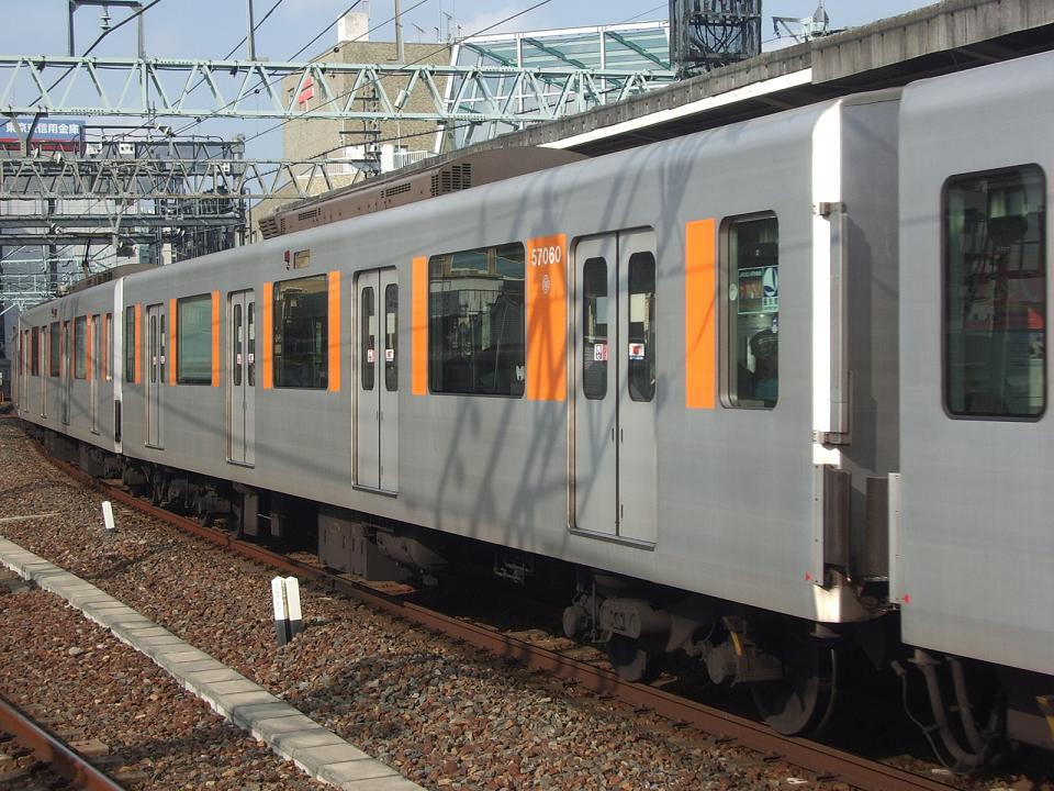・51055F 住吉発着(youtube) 半蔵門線直通用として東武が用意していた30000系も、6+4の編成だった事から扱い辛く、10両編成の新車として導入されたのが50050系で、少し前に登場していた東上線用の50000系を地下鉄に対応させた車両になります。モーターは日立IGBTとなります。東急5000系のそれとは多少音の響き方が異なる物の、モーター音の転調の流れはほぼ同じです。 |