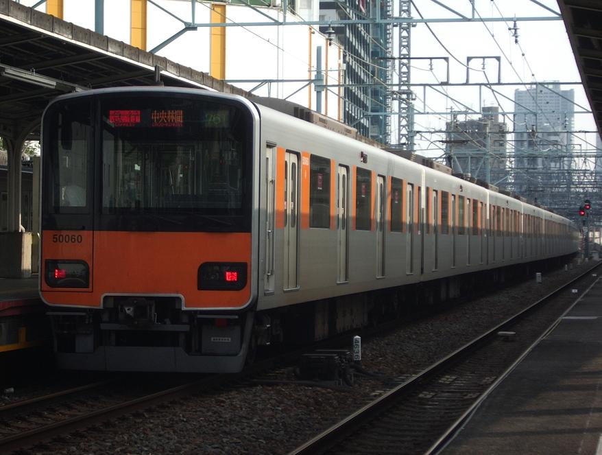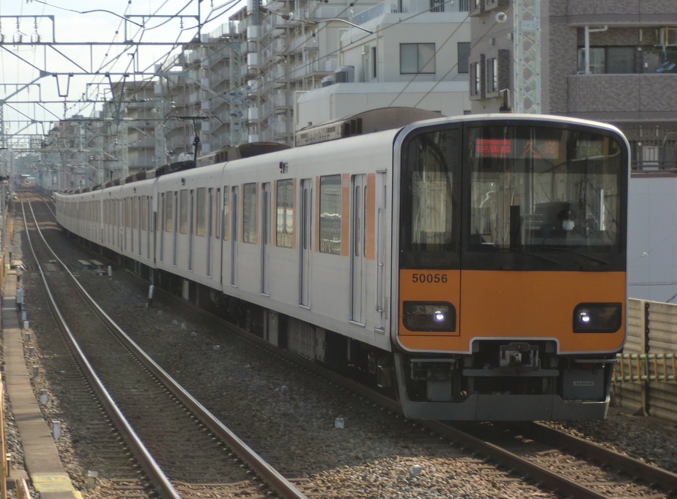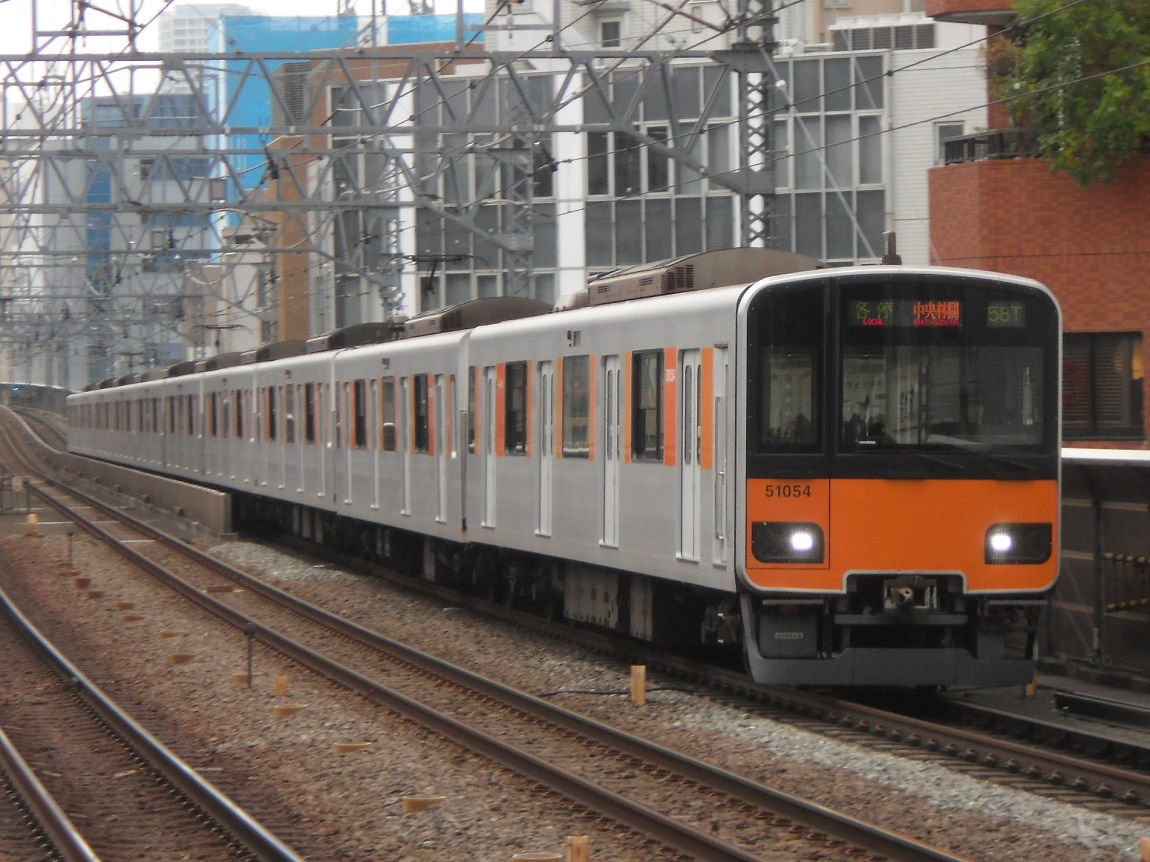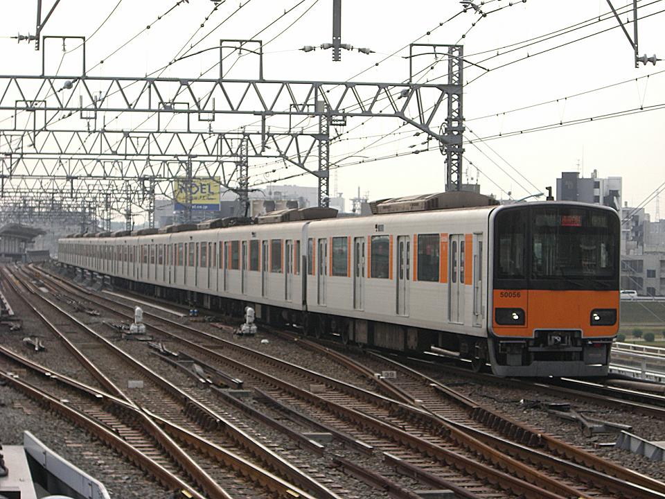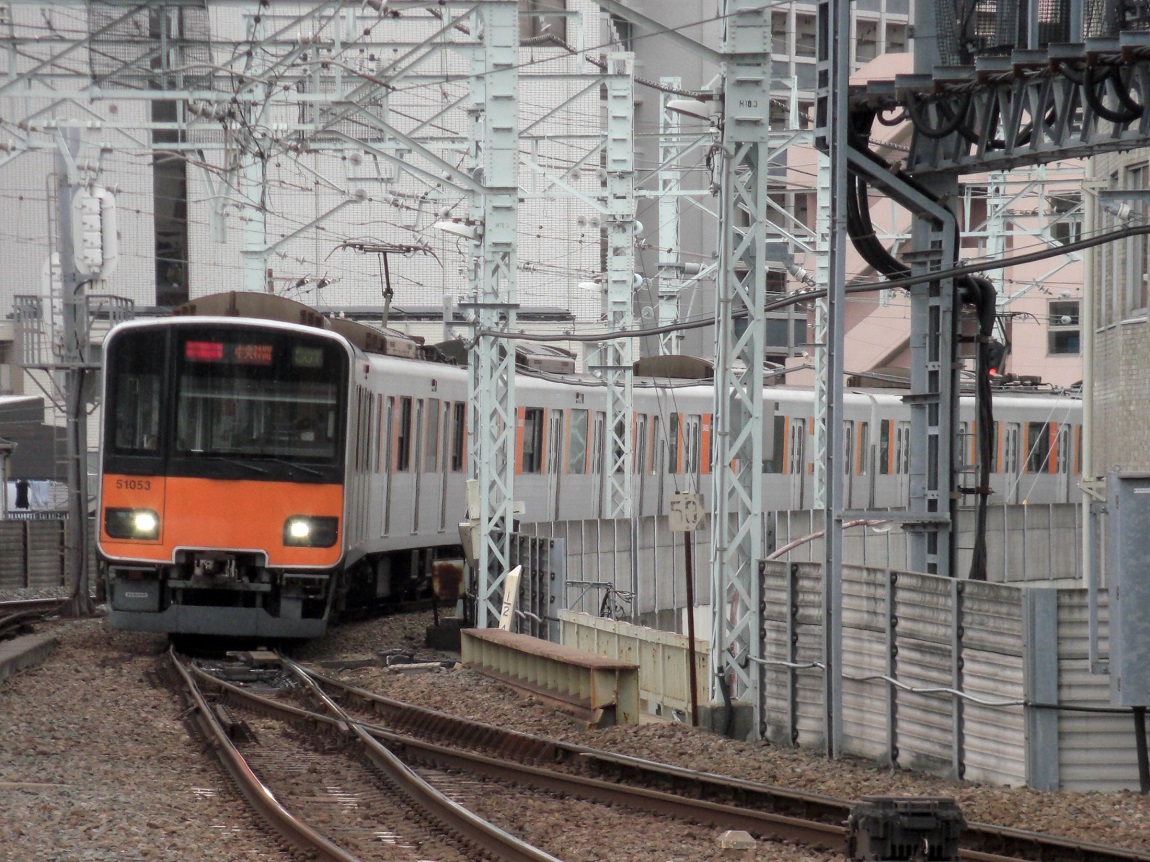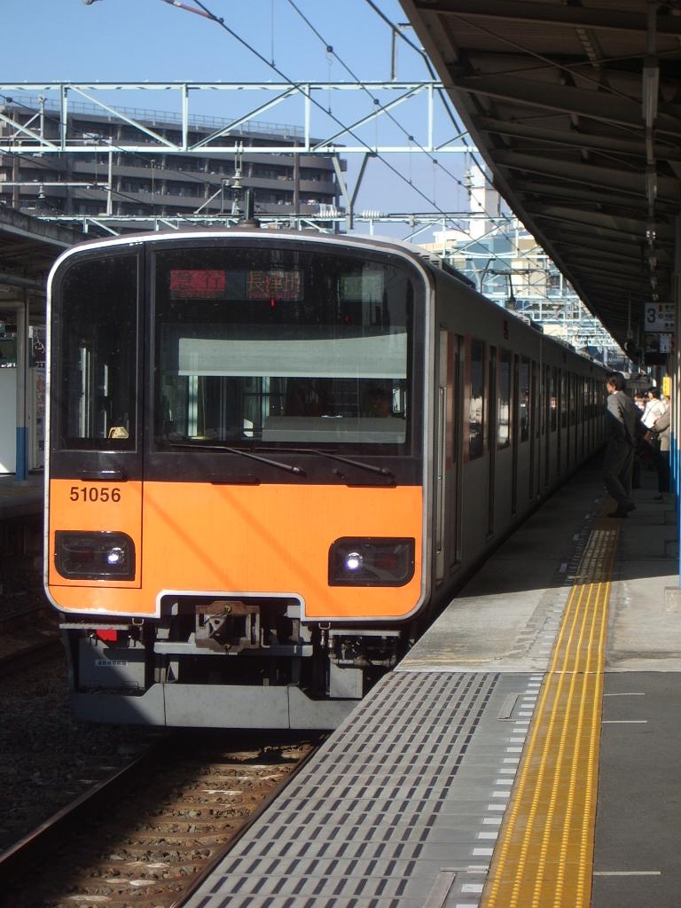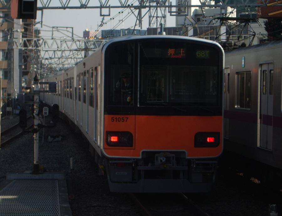 ・50050系 宮崎台発着(youtube) 編成番号は動画内に記載しています。 半蔵門線直通用に事前に作っていた30000系が6+4の編成で使い勝手が今一つだった為、その置換用に作られた50050系。モーターは東急5000系と同じく日立IGBTの前期型ですが、若干出だしの音の聞こえ方が異なり、また、5000系ほど爆音では無い様にも思えます。 |