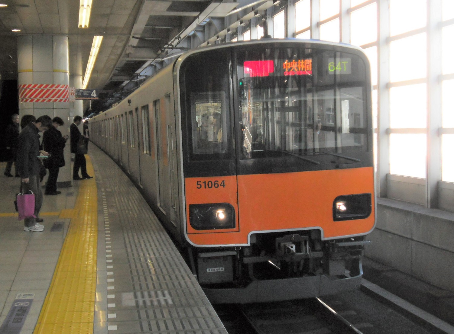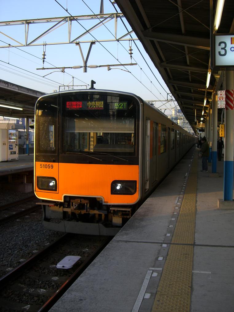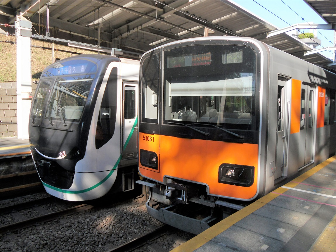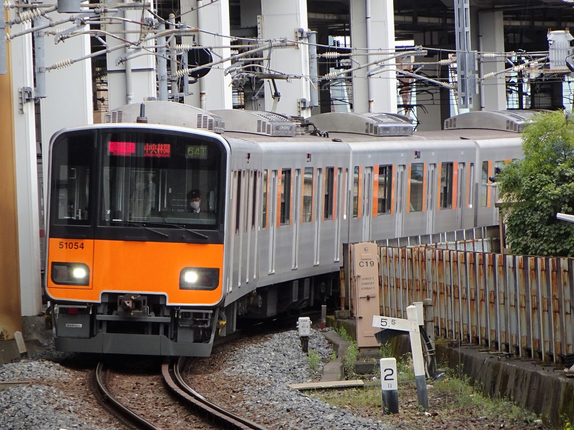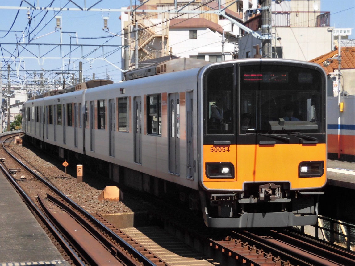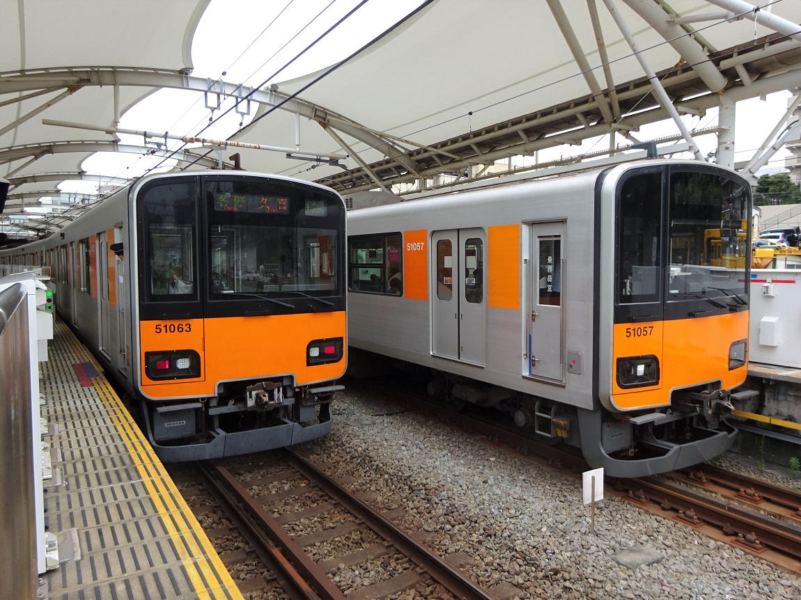 ・50050系 宮崎台発着(youtube) 編成番号は動画内に記載しています。 半蔵門線直通用に事前に作っていた30000系が6+4の編成で使い勝手が今一つだった為、その置換用に作られた50050系。モーターは東急5000系と同じく日立IGBTの前期型ですが、若干出だしの音の聞こえ方が異なり、また、5000系ほど爆音では無い様にも思えます。 |