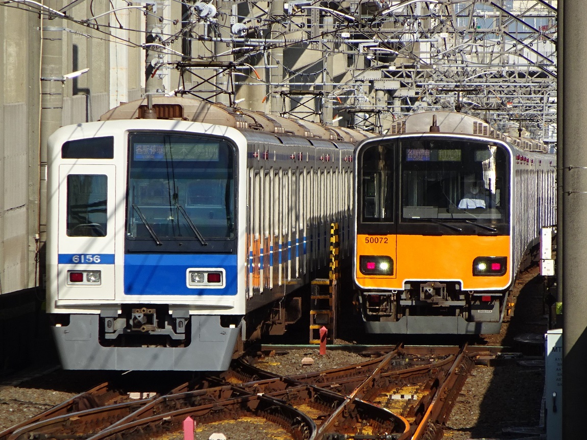 50050系の有楽町・副都心・東横・みなとみらい線用バージョン。9000系・9050系の更新だけでは足りない分を補完する目的で登場した車両で、東急に対応したATSを搭載し、フルカラーLEDの行先表示になり、ホームドアの位置に合わせる都合上、先頭車の長さがほんの少し長くなったのが50000系、50050系との違いとなります。 上写真は51073F。和光市にて。 |