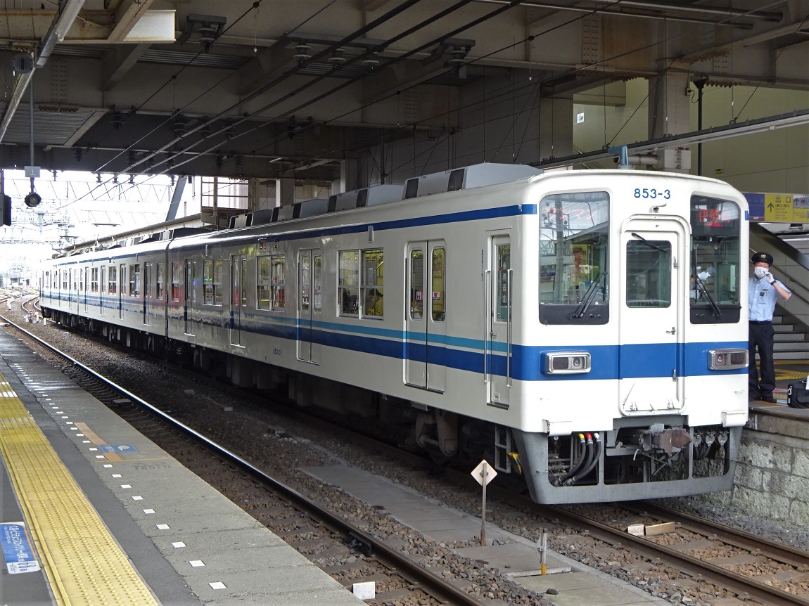 伊勢崎線北部ローカル輸送に残っていた1800系や5050系の最終的な置換の為、8000系のうち未更新のまま残っていた8両編成を使用し、サハ2両を抜いて3両編成2本のワンマン対応車として仕立てた車両が800系で、元になった車両の連結位置によって800系と850系の2種類に大別されています。性能はどちらも全く同じですが、850系は片方の先頭車がダブルパンタとなっており、配線の都合上見た目の印象が少々異なっています。