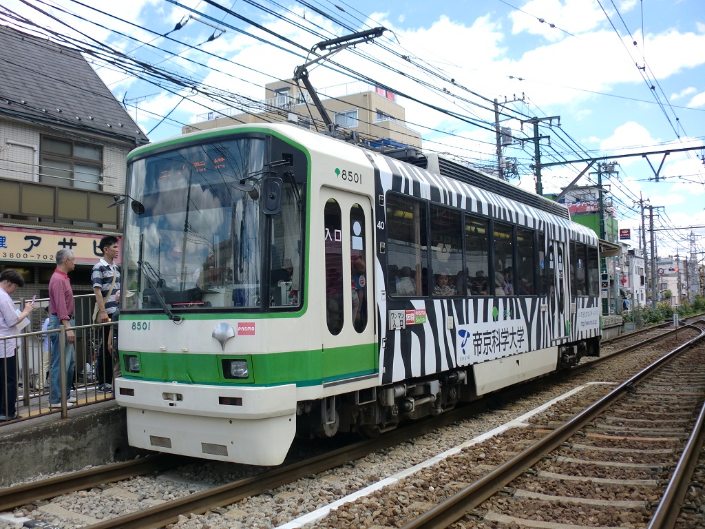 1990年、7500形以来の都電の新形式として登場した車両。登場当時は、既存の都電の車両を全てこの車両に置き換える計画があったらしいのですが計画は変更され、結果として特に何かの代替ではなく単純な増備としての登場、という形になってしまいました。走行装置はVVVF(GTO)。最初に登場した8501と、その後に登場した車両では若干仕様が異なっており、前面のライトも異なるので判別は簡単です。尚、嘗ては他の車両と車内放送の声が異なっていました。