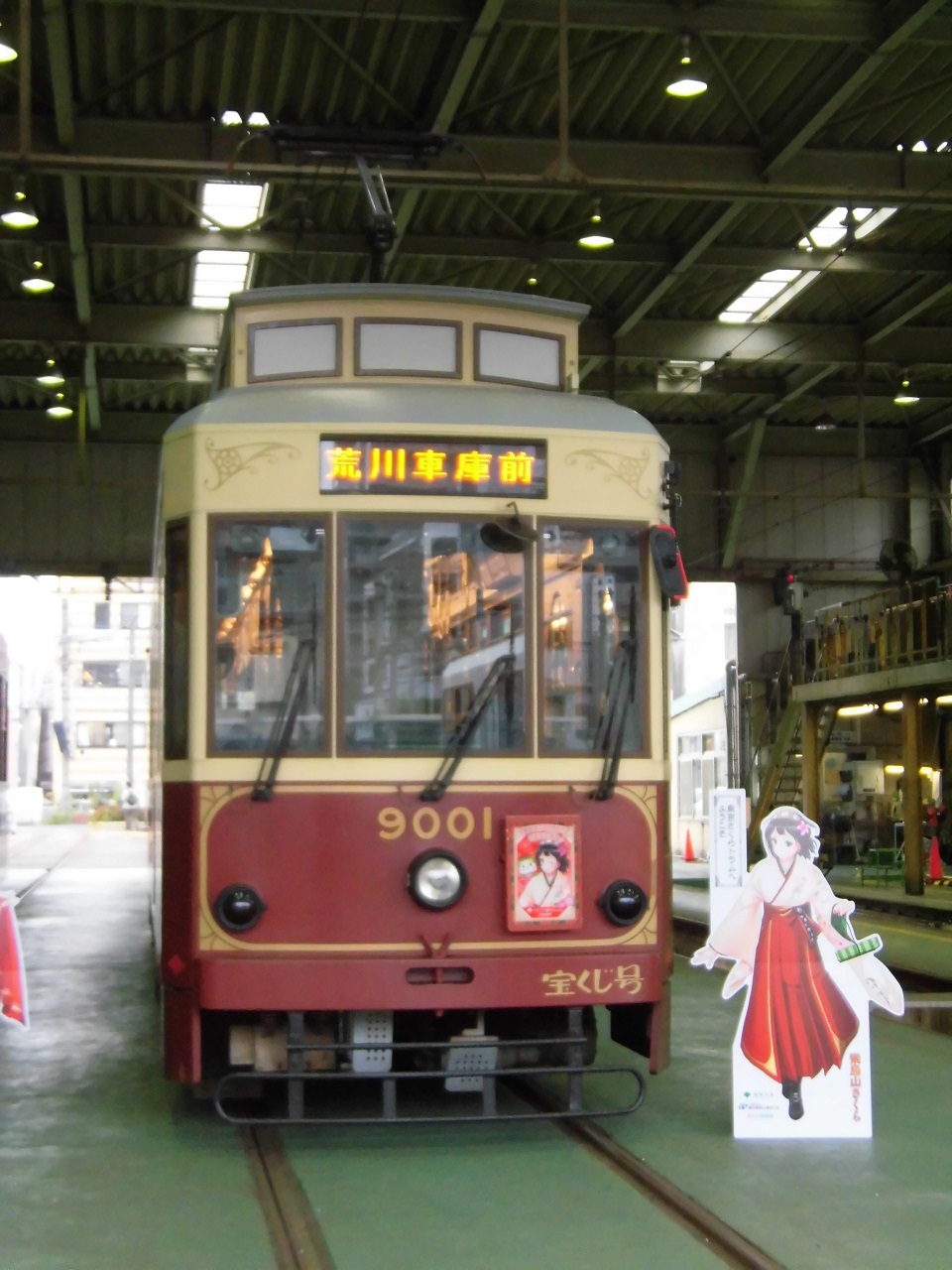 2007/5/27から運用を開始した日本宝くじ協会からの助成金で造られた車両。出来る限り昭和初期の都電の雰囲気を出しつつも最新型の機器を搭載した車両となりました(VVVF・LED・シングルアームパンタ等)。後に登場した8800形も、基本的に性能はこの車両と共通です。