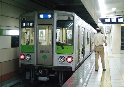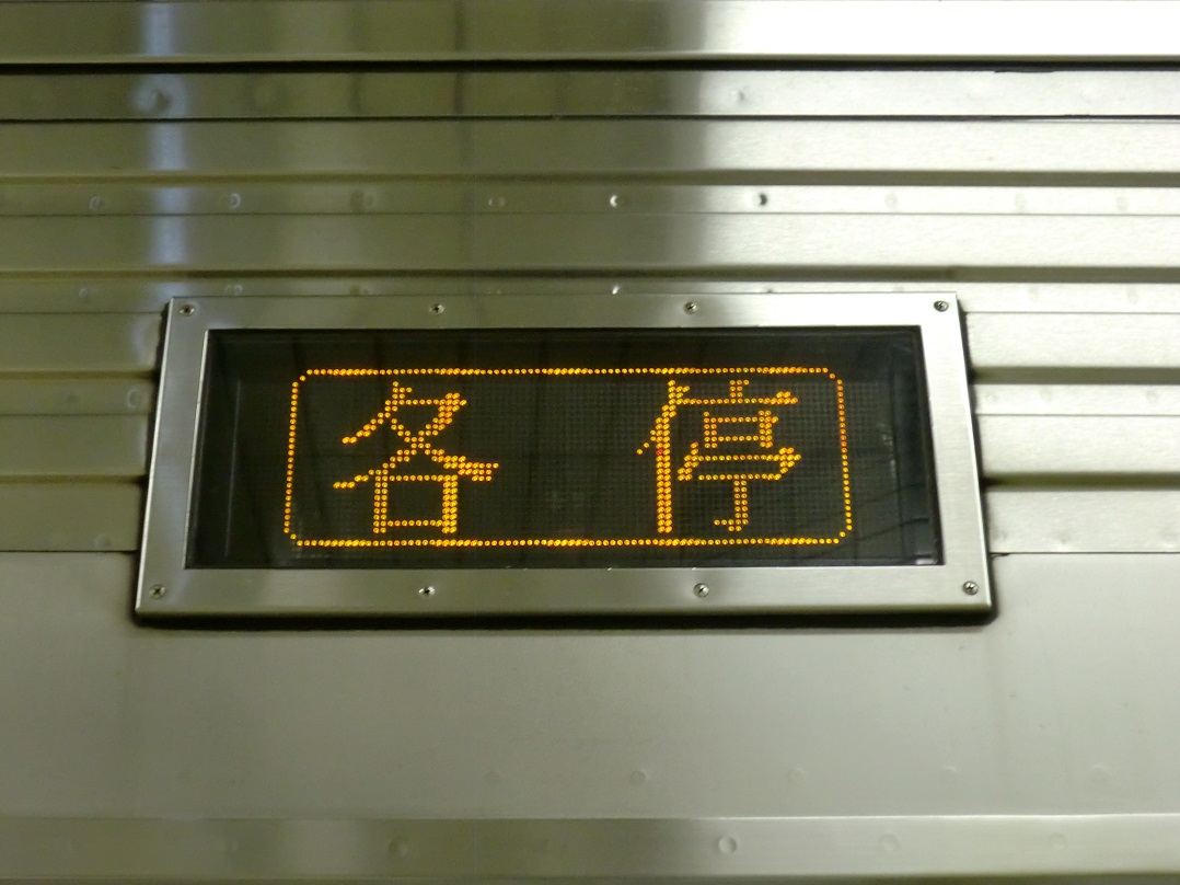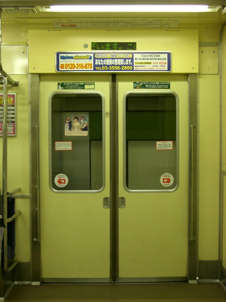 ・10-000形8次車ドア開閉(youtube) 10-000形の最新グループ、8次車。7次車から車内の化粧板が白系のものに変更され、8次車で初めてこのドアチャイムを採用しました(とはいっても、現在は7次車のドアチャイムもこれと同じものに変更されています)。撮影当時は扉中央のHゴムは灰色でしたが、2014年現在は黒色のものに交換されています。 なお、ドアチャイムは開くときと閉まる時で音色を分けています。左右の扉で音色を分けているわけではありません。 |