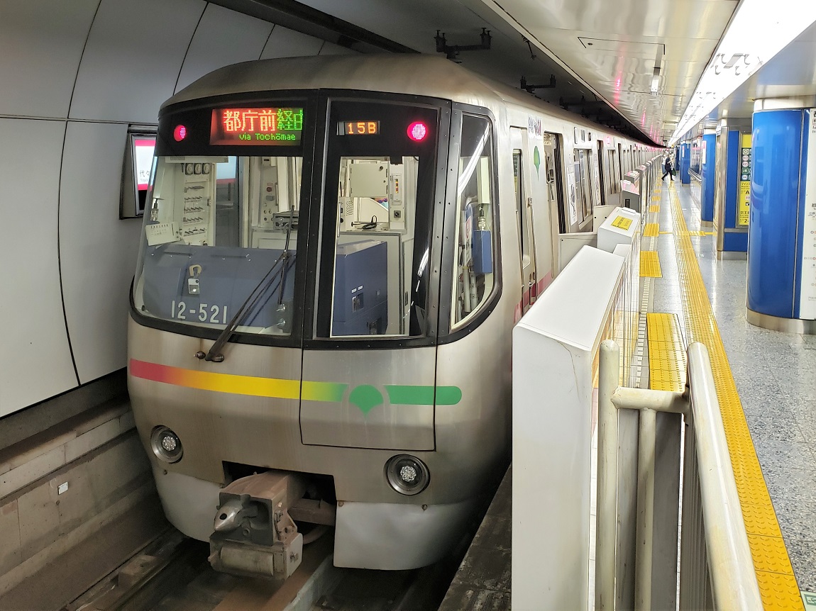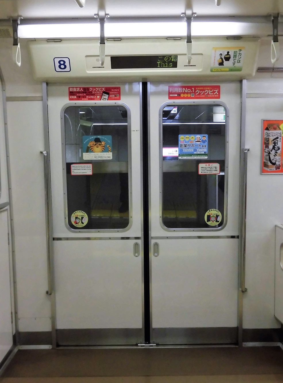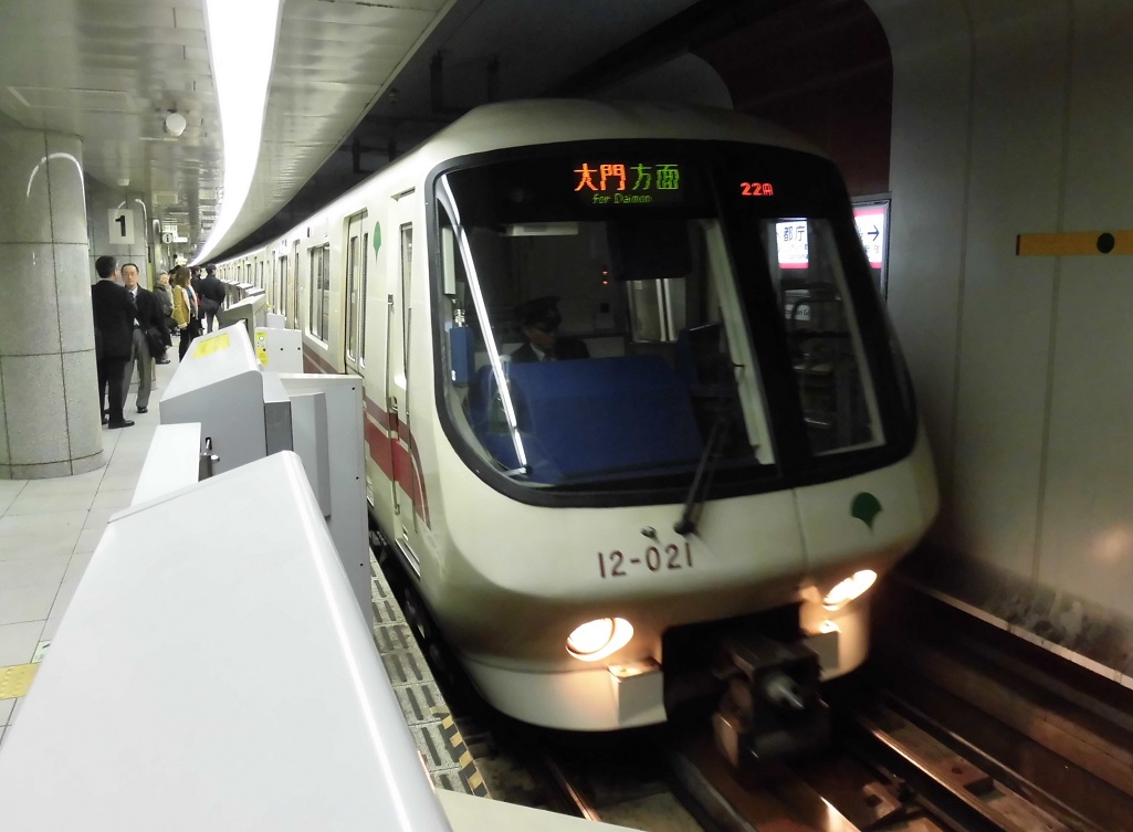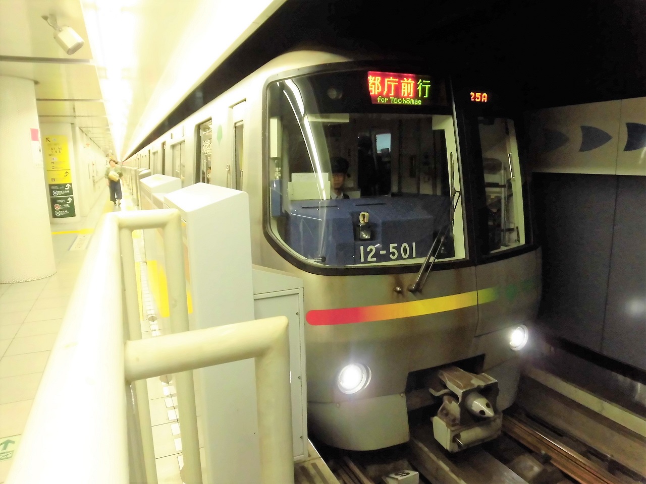 ・12-000形1・2次車ドア開閉(youtube) 都営大江戸線の12-000形は、小さな車体故扉の上半分ほどが車内側へ折れ曲がっているのが特徴。初期型であろうが後期形であろうが別に違いは無い(はず・・・)のですが、せっかく初期型に乗れたので。 |