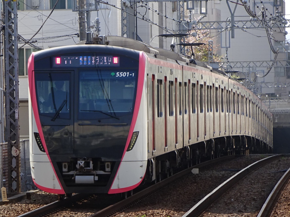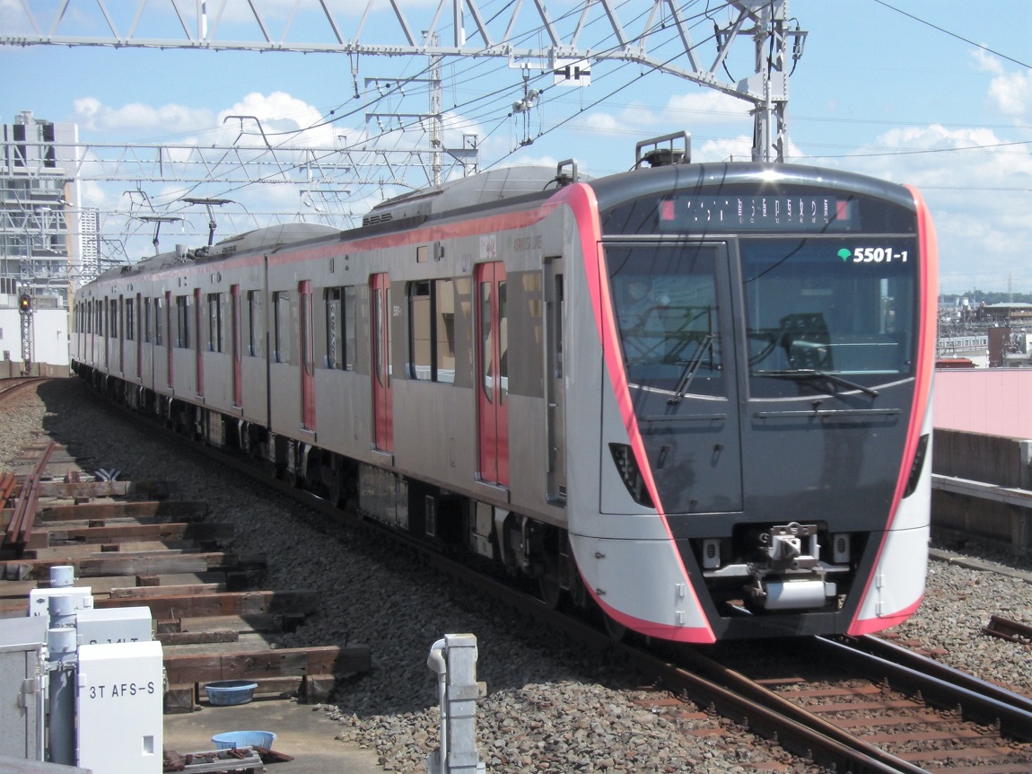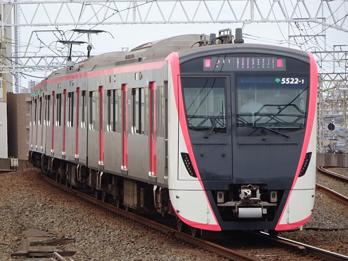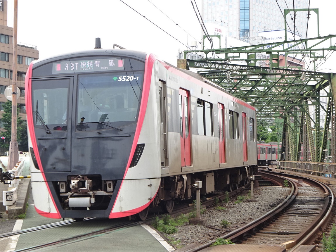 ・5500形 日本橋発着(youtube) 5300形の後継として登場した5500形。個人的には近年のある程度仕様が共通化された鉄道車両の中で一際良いデザインのように思えます。モーターは近年の新型車両にありがちな三菱SiCとなりましたが、他のSiCの車両とは似ても似つかぬとんでもない音を出すのが大きな特徴。音量も非常に大きいので聞き応えも抜群(逆に言えばとても煩い)です。こんなところで5300形の後継車らしさが出てしまっているという不思議。 |