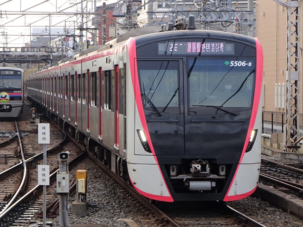 ・5500形(5506編成)高輪台発着(youtube) 近年のある程度標準化が図られた通勤電車の中ではかなり秀逸なデザインに思える5500形。モーターは三菱SiCでなかなか派手な音を立ててくれます。やたら空調が煩いのが気がかりではありますが。 |