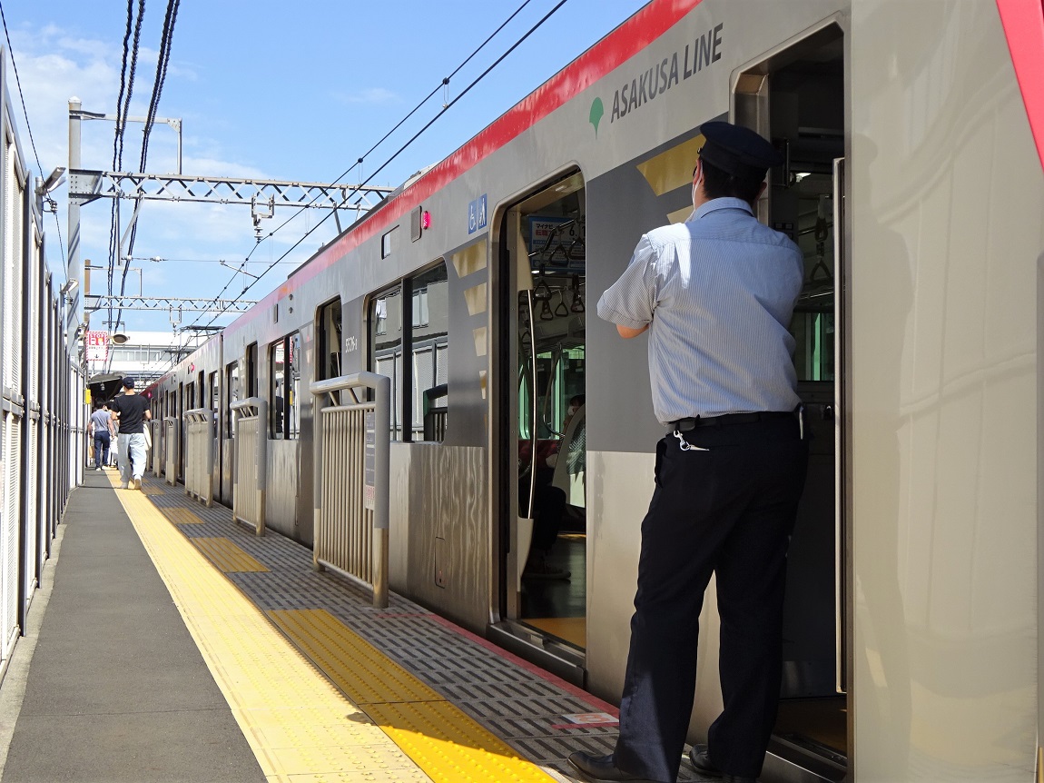 ・5500形走行音 【浅草線】新橋→大門 【浅草線】大門→三田 【浅草線】三田→泉岳寺 【浅草線】高輪台→五反田(1分50秒:458KB) 【浅草線】西馬込→馬込 【浅草線】馬込→中延 【浅草線】中延→戸越 【浅草線】戸越→五反田 自動放送が搭載されているのは5300形と同様ですが、音質がとてもクリアなものとなった為聞こえやすくなりました。走行装置は三菱SiCのVVVF。なかなか特徴的な音で、近年の新型車としてはかなり個性が出ている部類なのではないでしょうか。 そしてドアチャイムですが、直通先に合わせて従来のものを用いるかと思いきや、JRチャイムに変更されてしまいました。総合車両製作所の製造なのでそれ故のことかと思われます。その上音量もとても小さいので、扉の近くにいないと殆ど聞こえません。何だかなぁ。 |